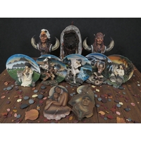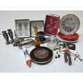Mixed lot: boxed glassware, Golden Wedding Anniversary plate, decorative plates, chrome items, glass bottles, figures and sundries