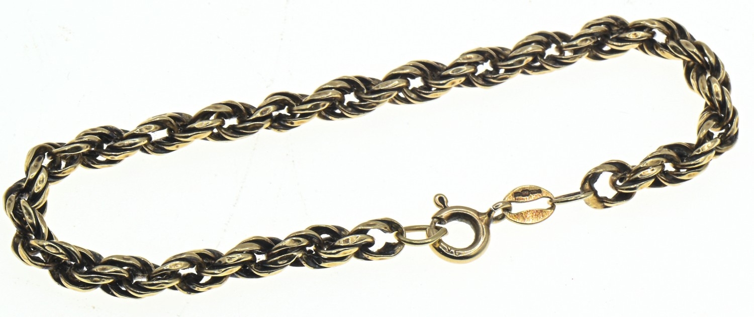 9ct gold rope twist bracelet, hallmarked, length 155mm, 2.4 grams