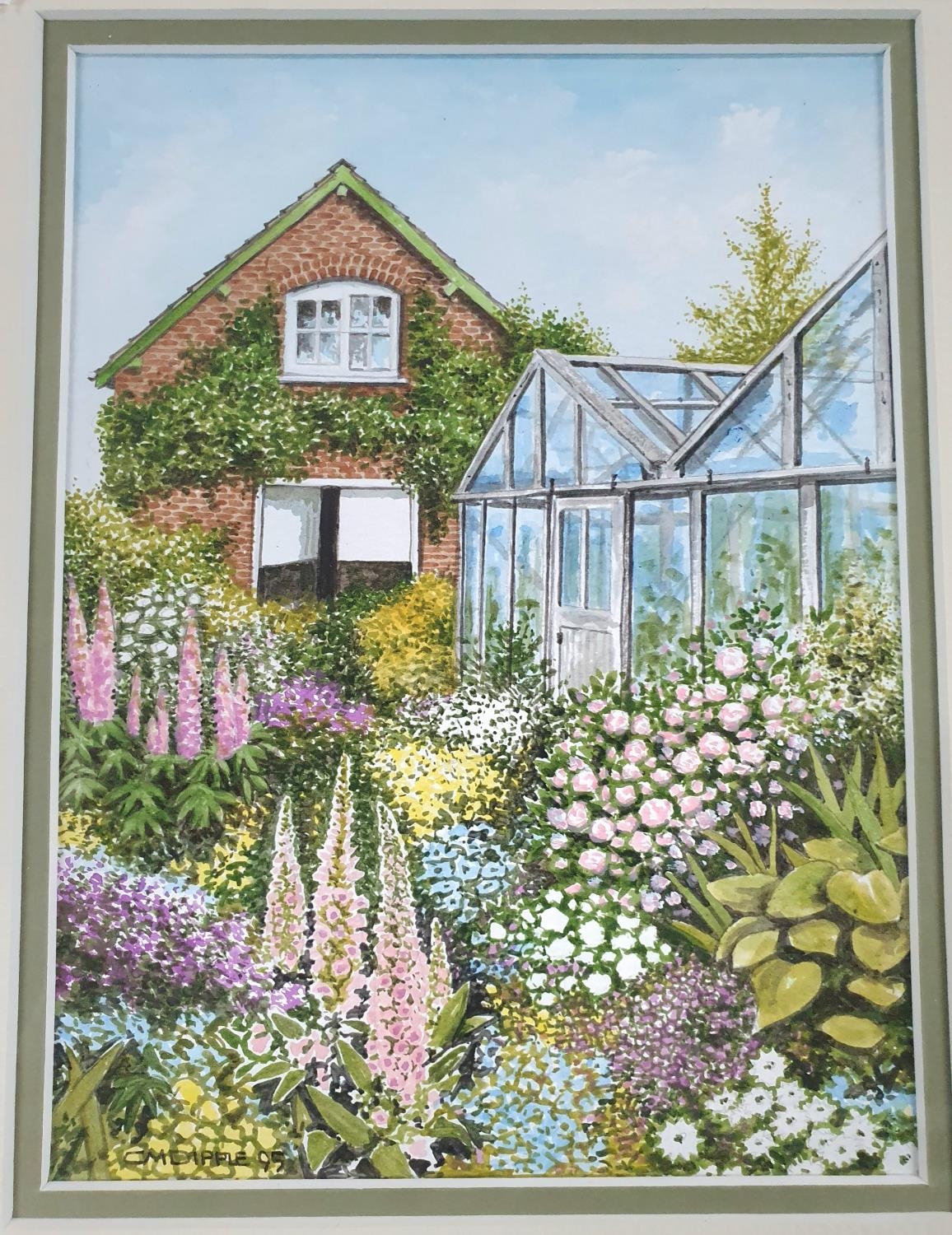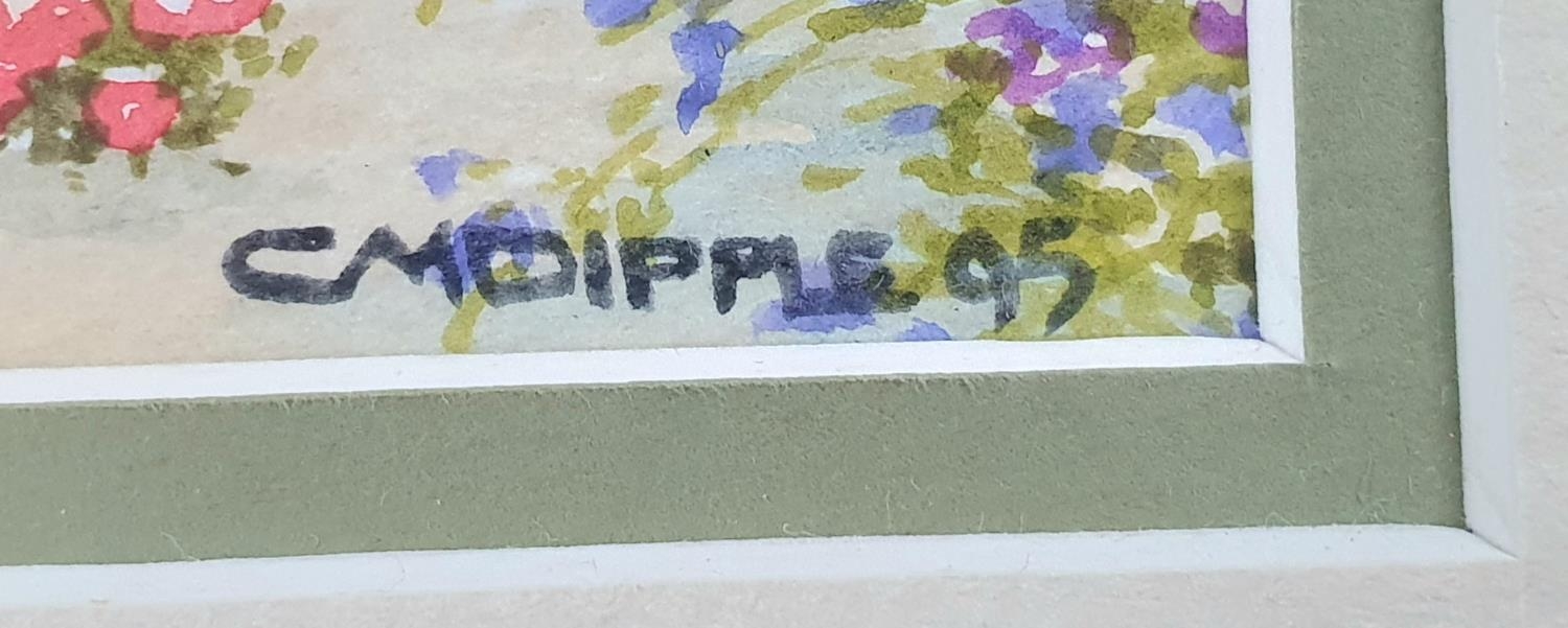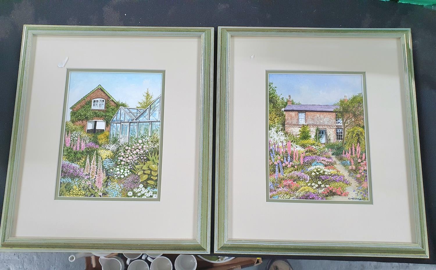 Pair of 1995 garden scene watercolours, both signed D M Dipple and both in matching frames (2)