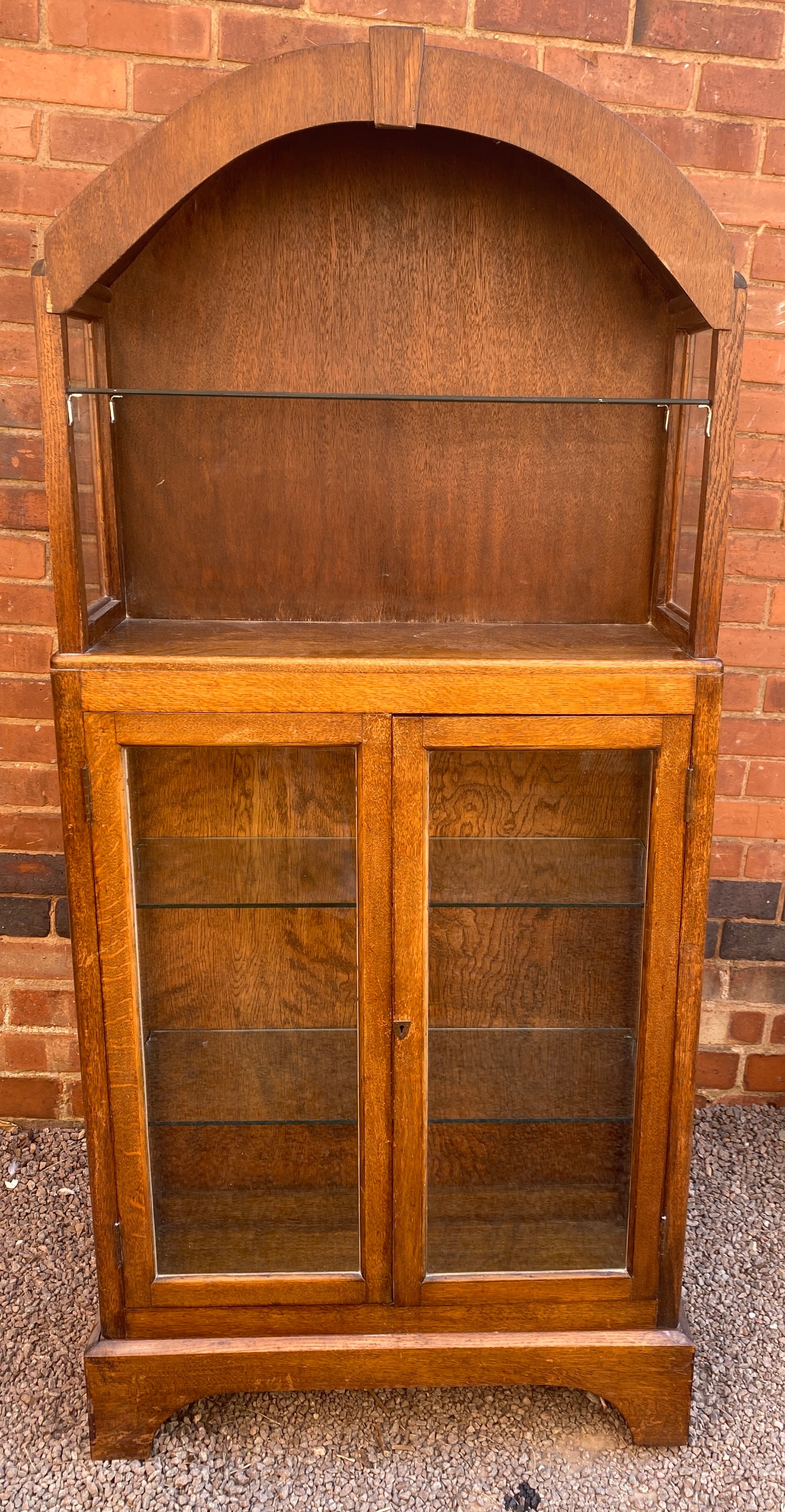 GLAZED OAK ARCHED TOP CABINET