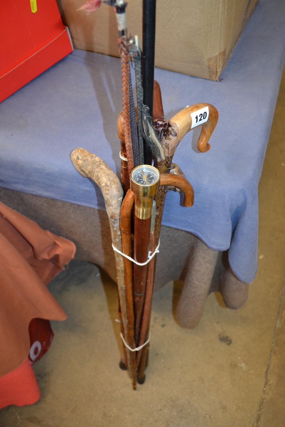 COMPASS TOP WALKING CANE, COACHING WHIPS (A/F) AND WALKING STICKS