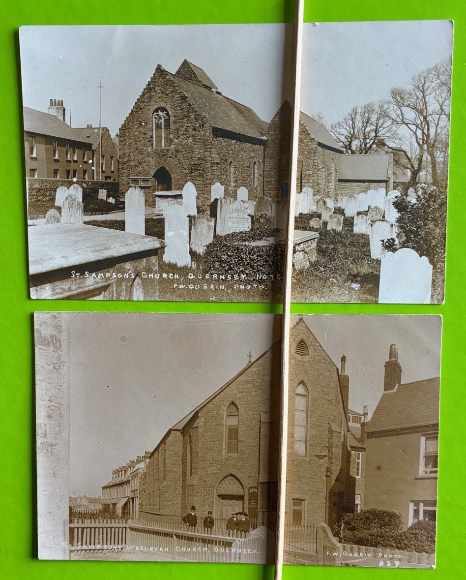 Two real photographic postcards by F.W.Guerin, St Sampson's Church Guernsey & St Sampson's Wesleyan Church Guernsey (2).