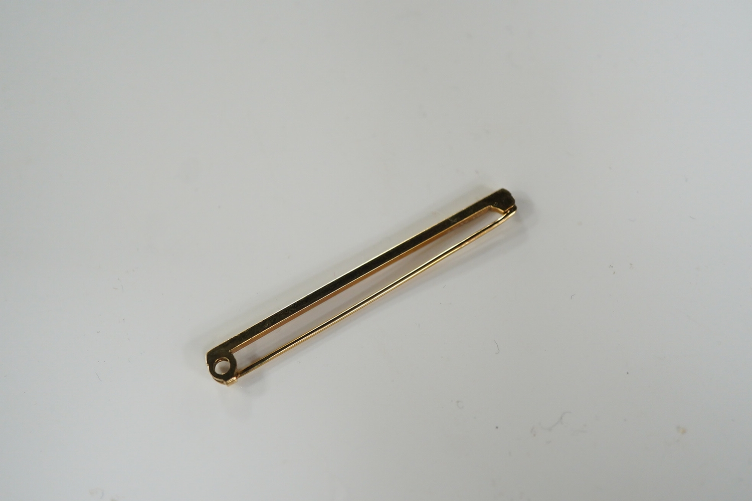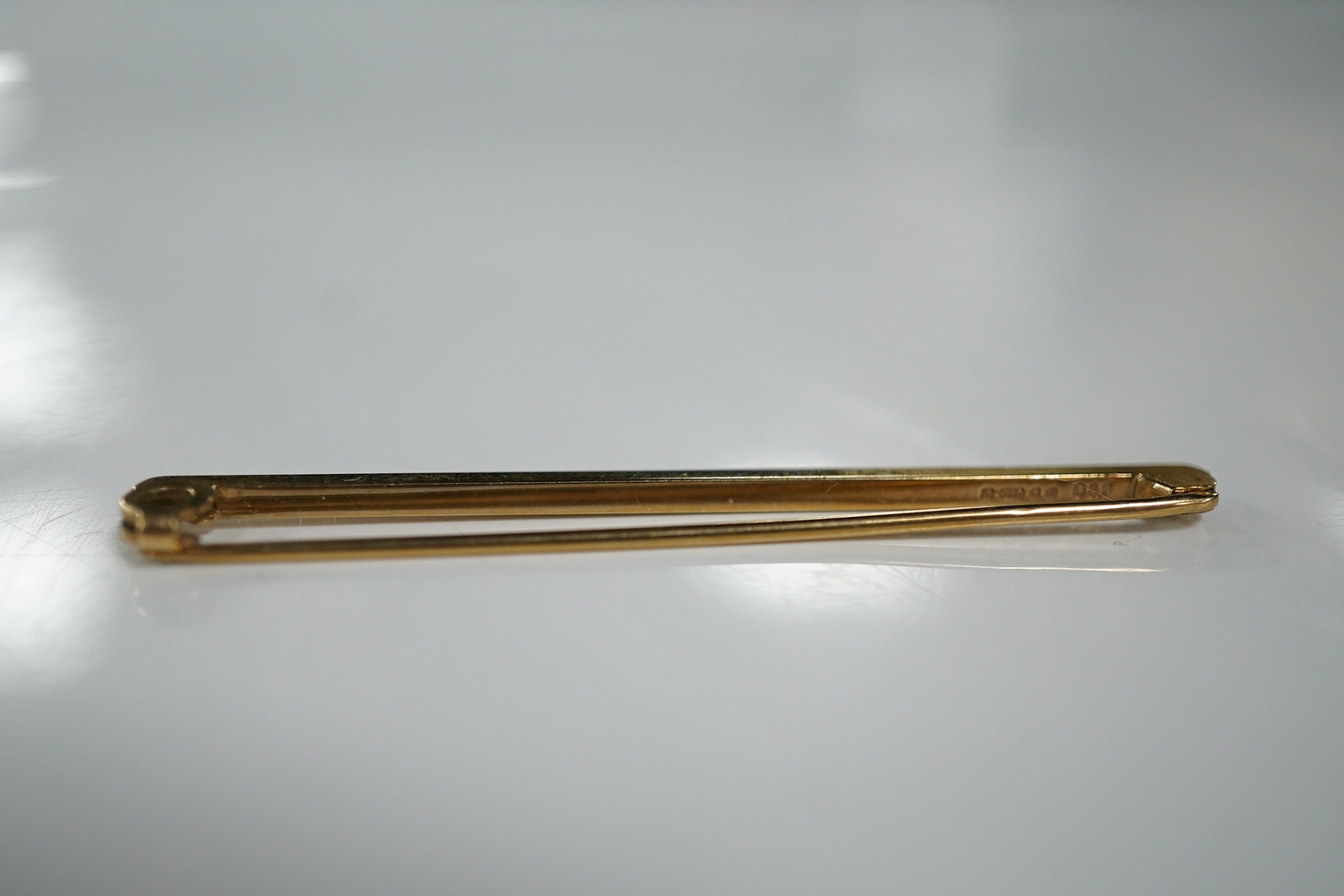 A 9ct gold tie pin, length 5cm, British hallmarks, gross weight approximately 2.5 grams