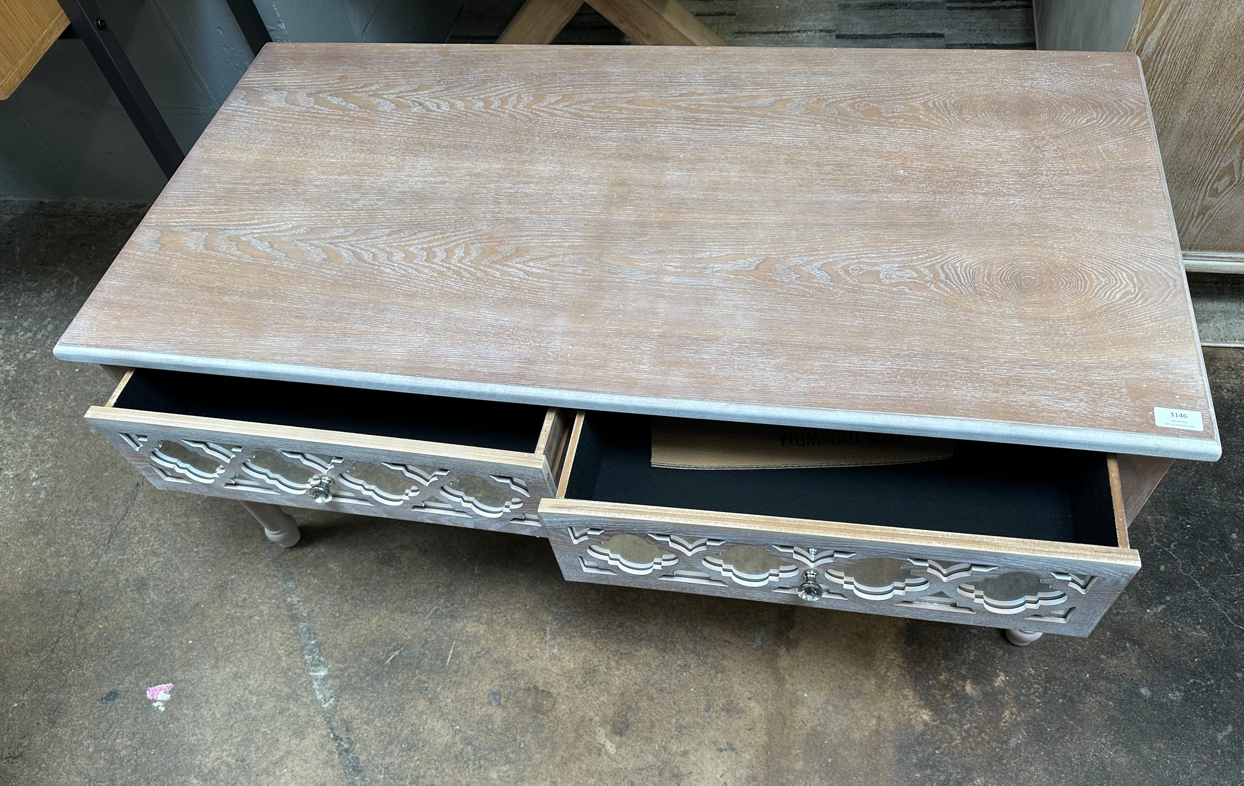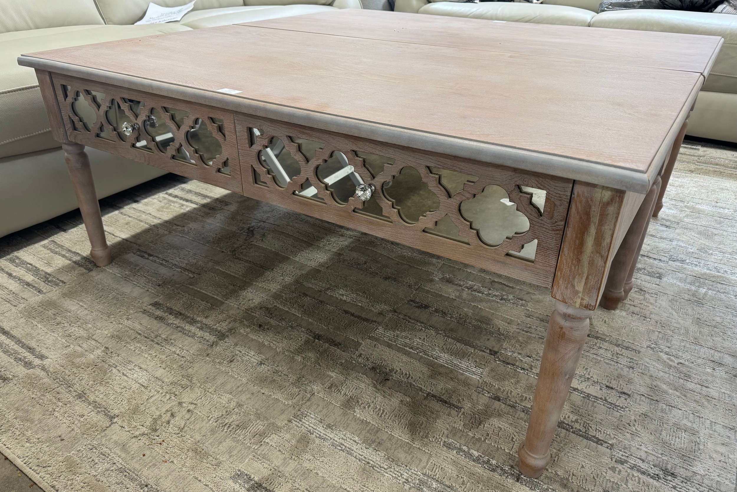 A lattice mirrored 2 drawer coffee table