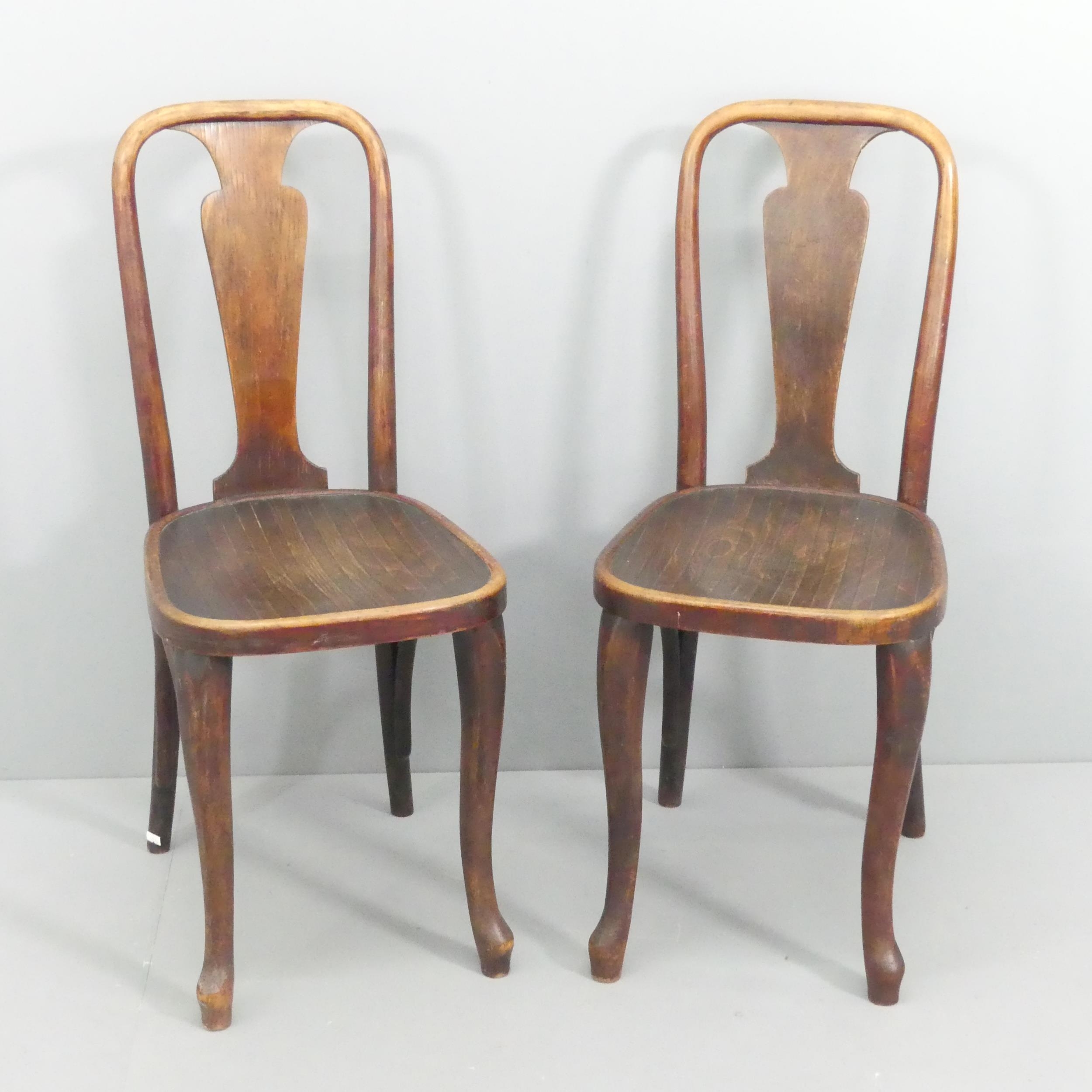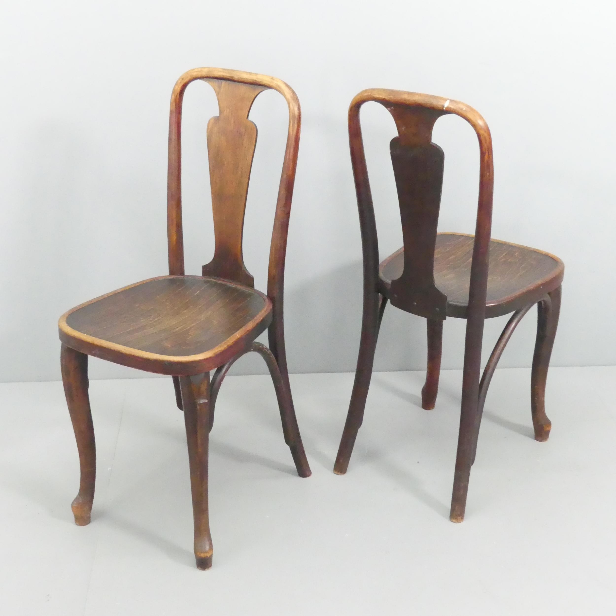 A pair of early 20th century Thonet bentwood chairs, with shaped front legs.