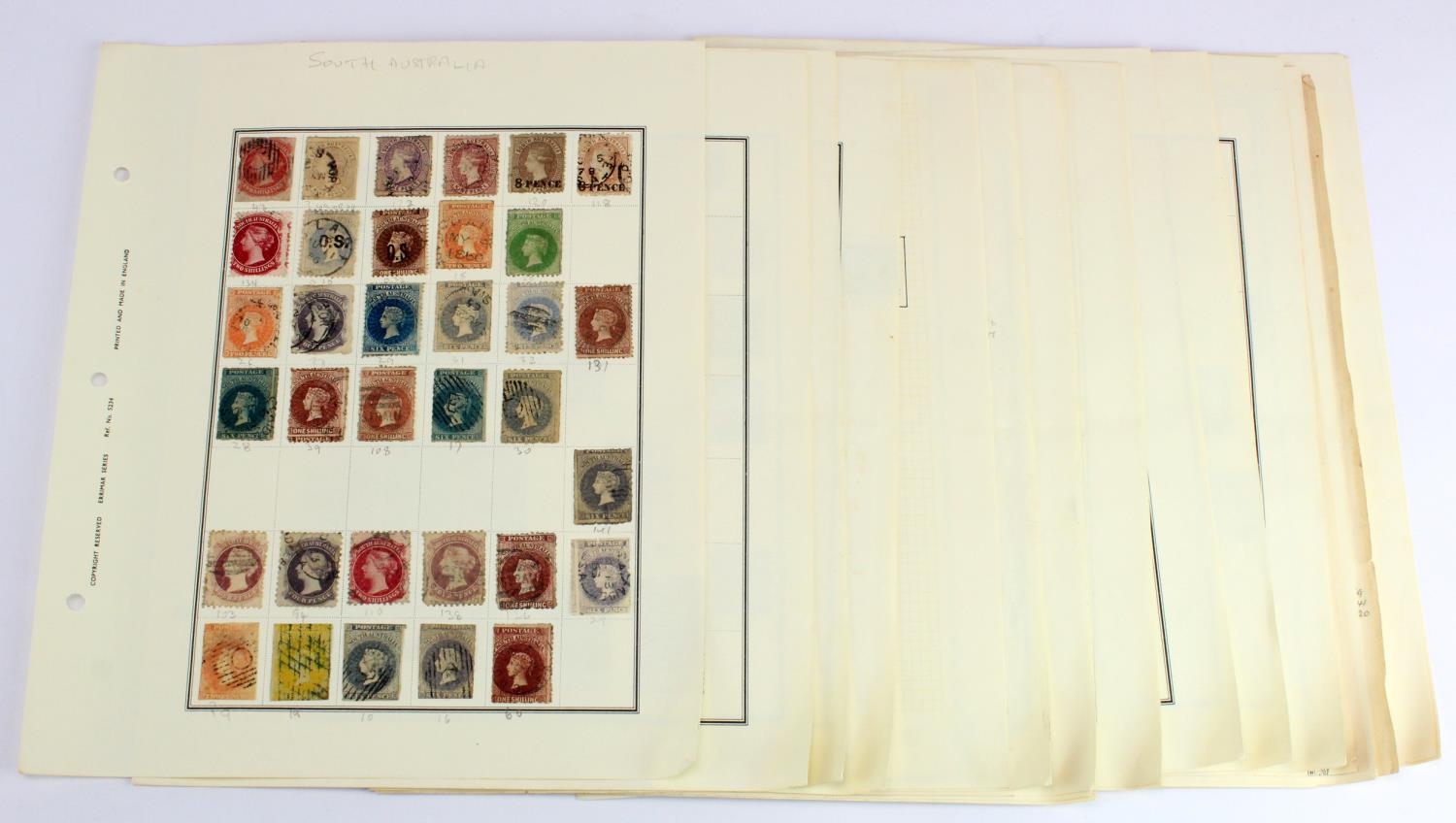 Australian States mixed lot of several hundreds on old album leaves, many Victorian Heads for checking. (Qty)