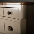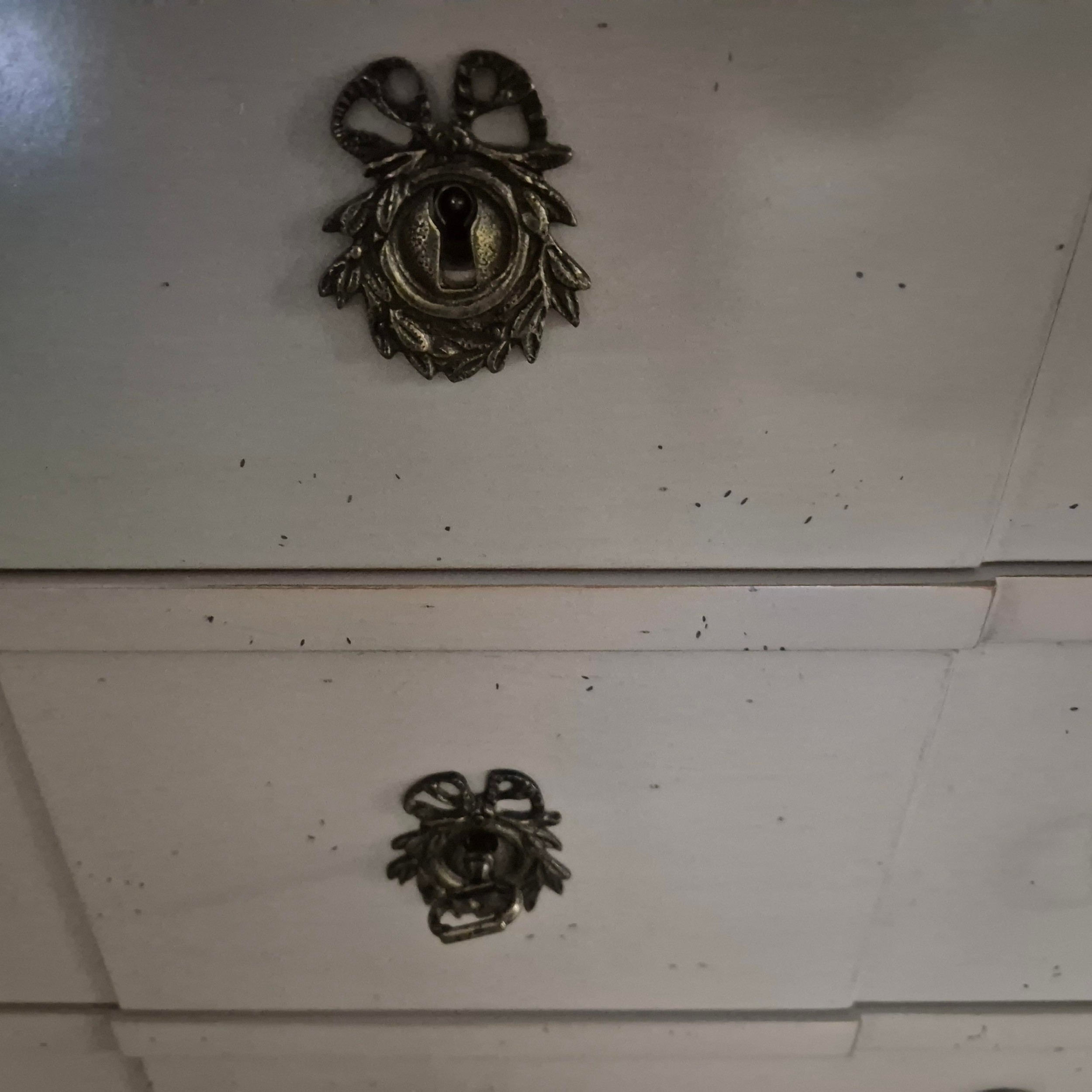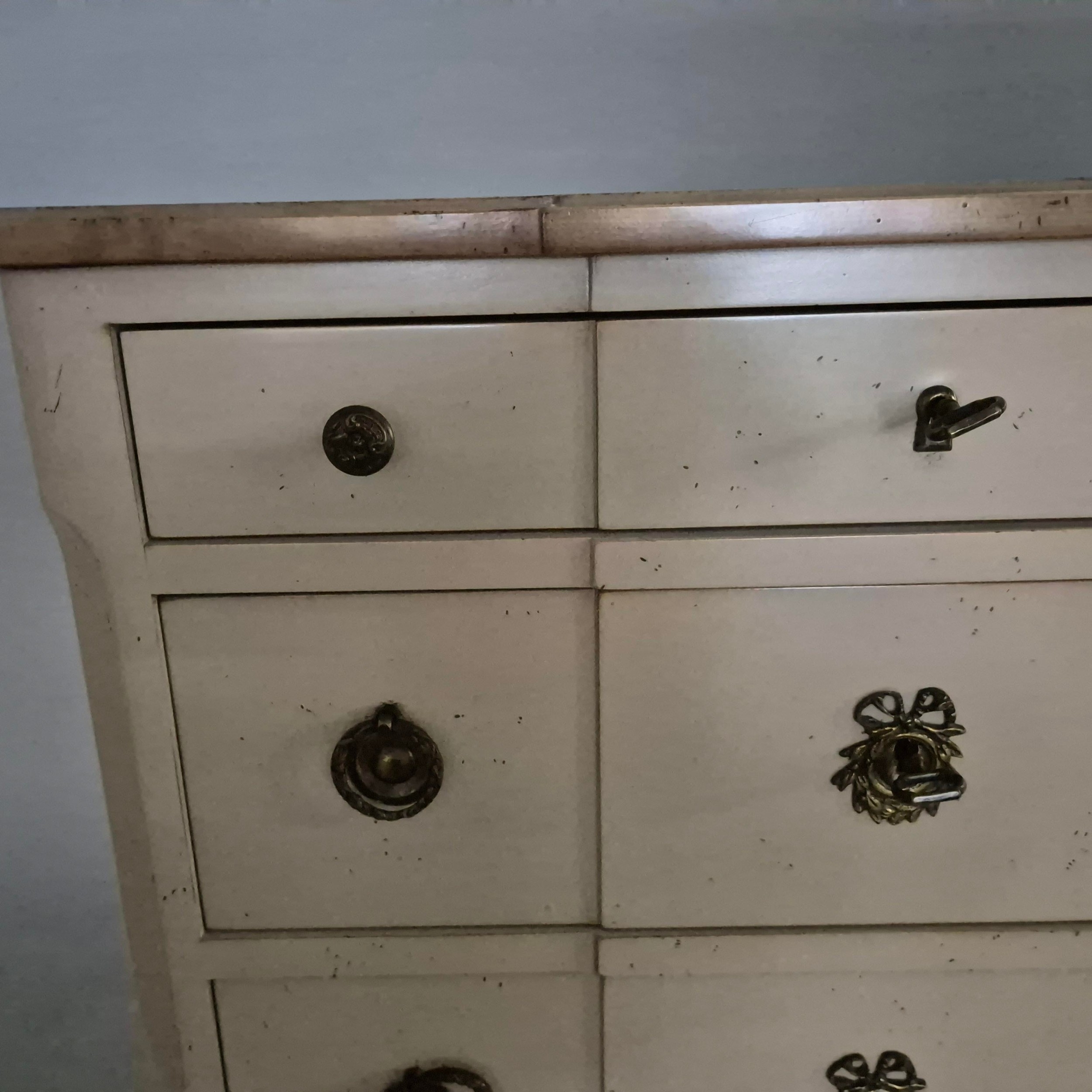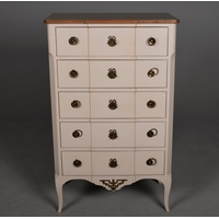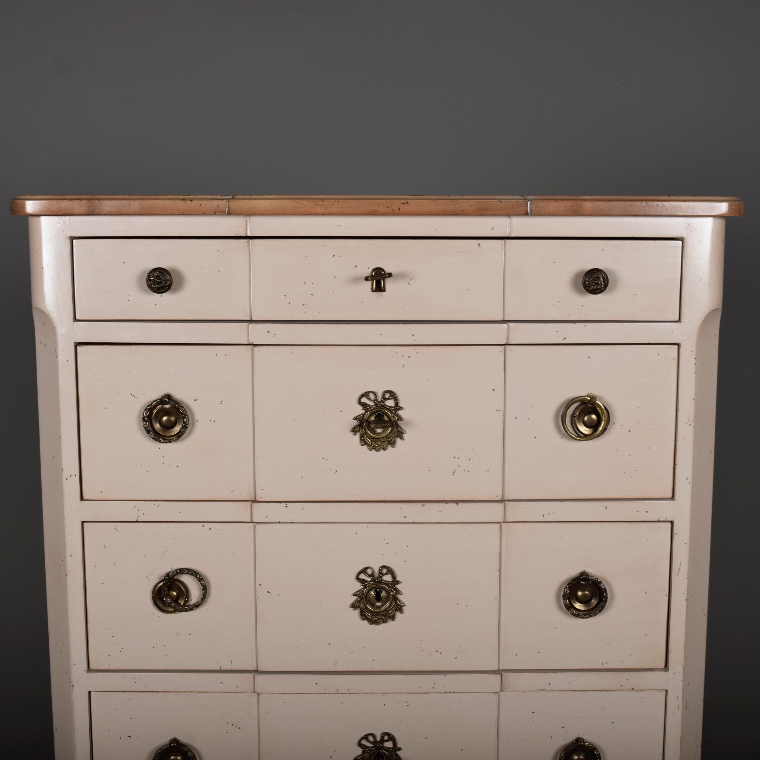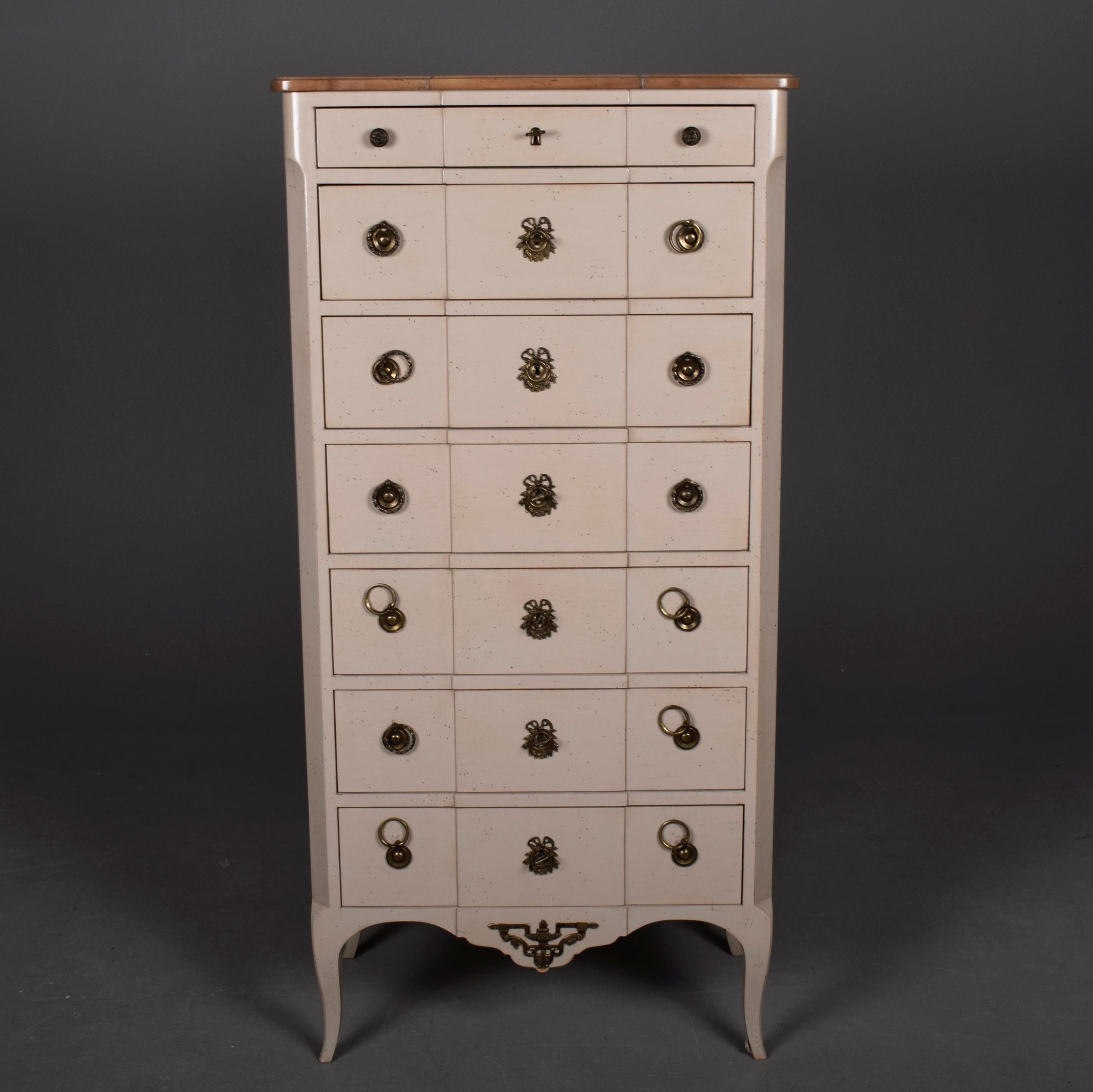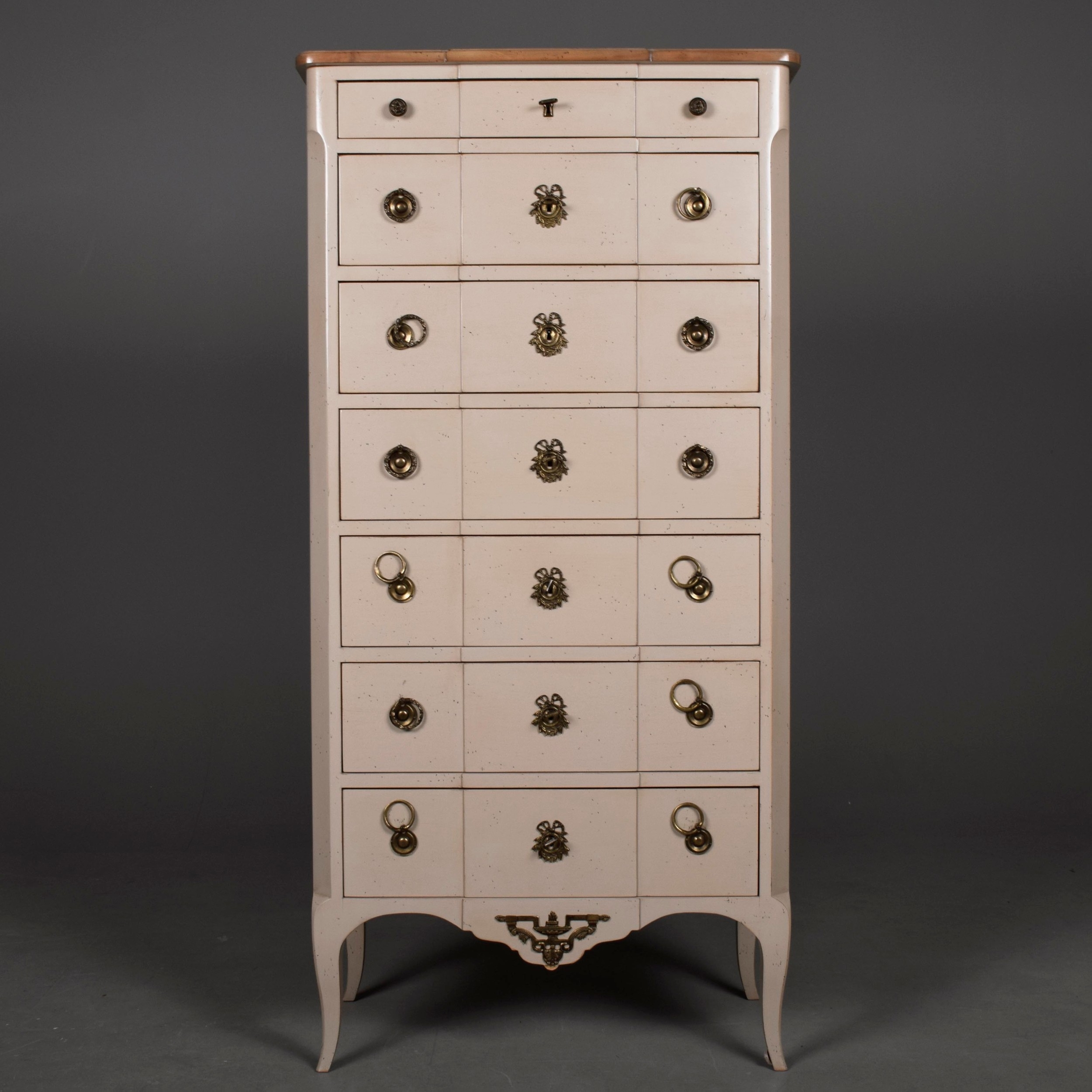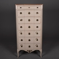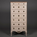 ROCHE BOBOIS SEVEN DRAWER CHEST. in an antiqued painted finish 142 cm t x 70 cm w x 40 cm d.