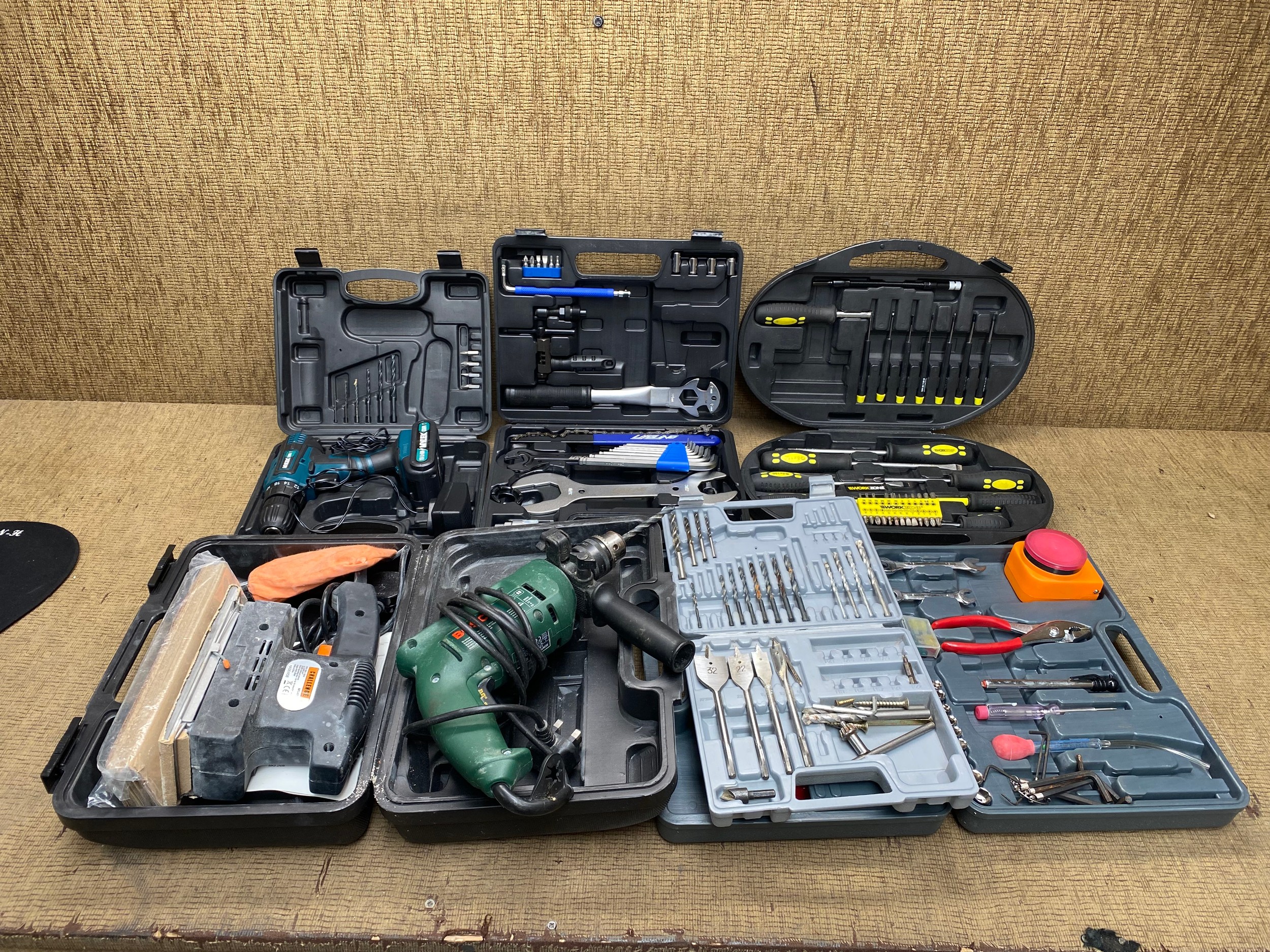Mixed tools including: Bosch drill, Bosch drill bits and.