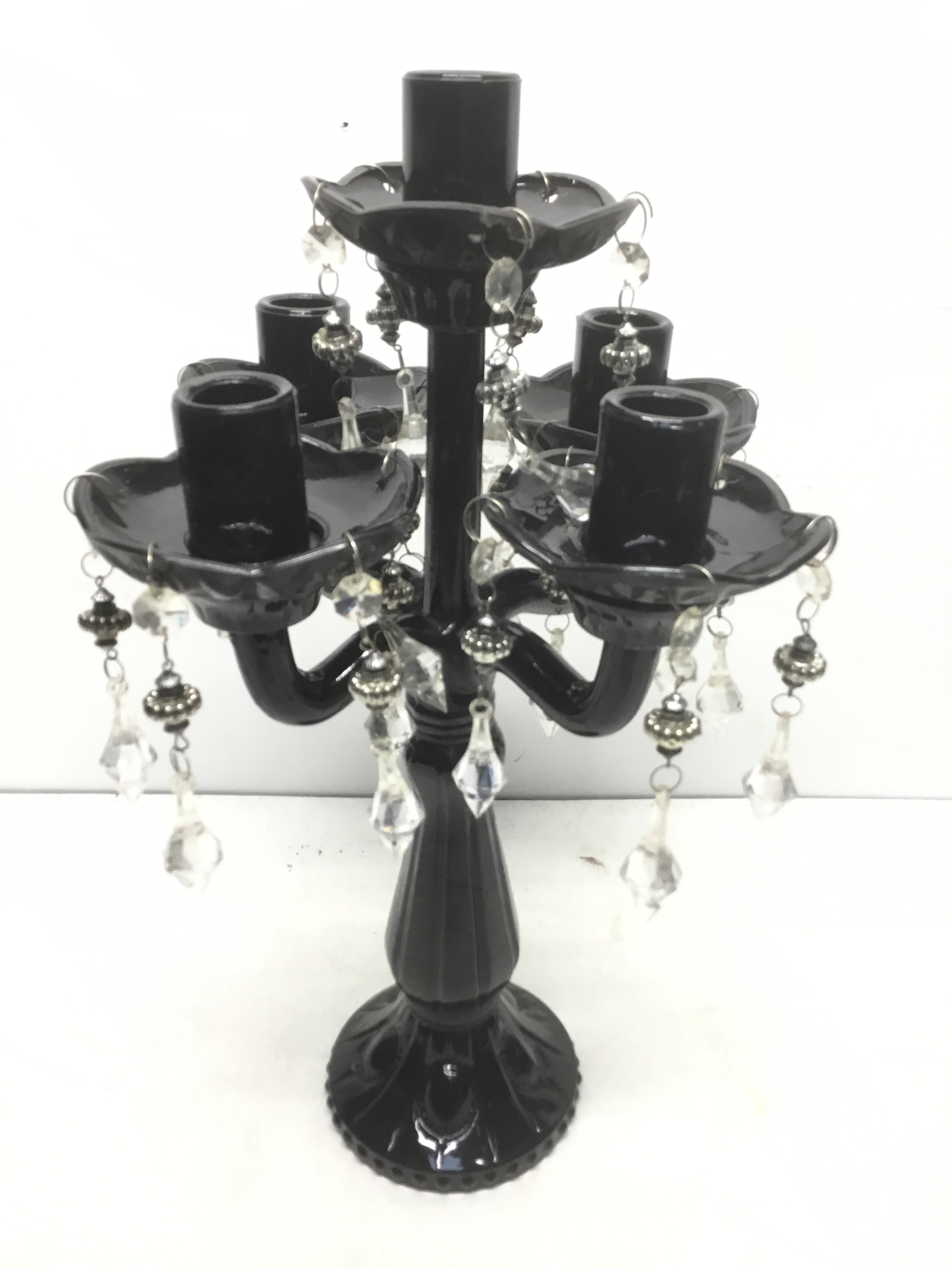 Gothic glass five arm candelabra with droplets