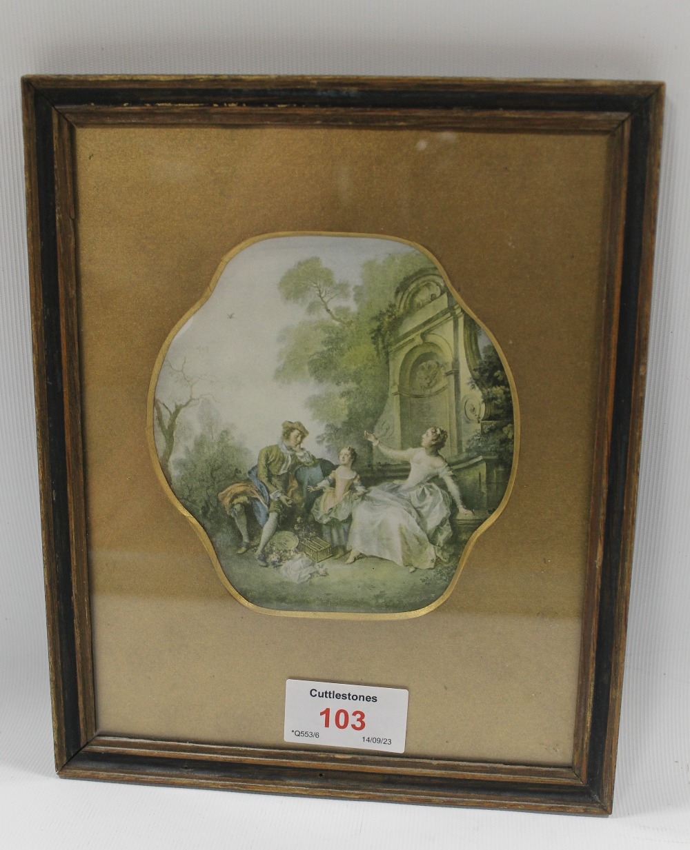 AFTER NICHOLAS LANCRET (1690 - 1743). French school, 'Innocence' & 'The Music Lesson' see verso, engravings on paper, unsigned, framed and glazed, 11 x 10 cm