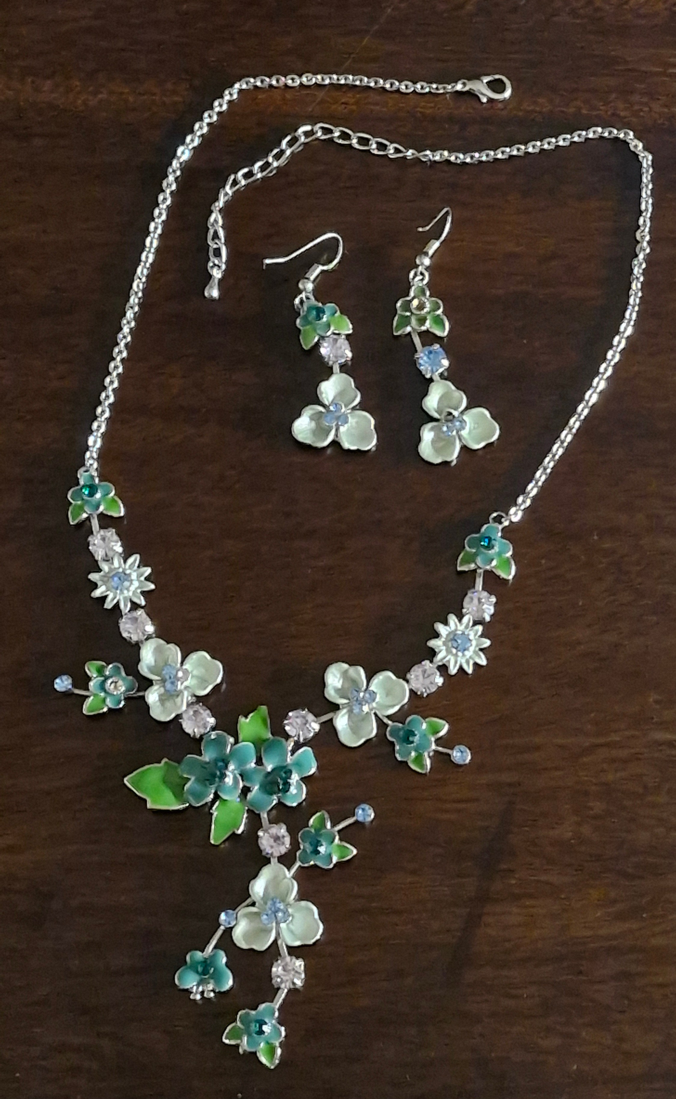 A floral and enamalled intage Deco style prom knecklace with matching earrings