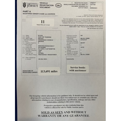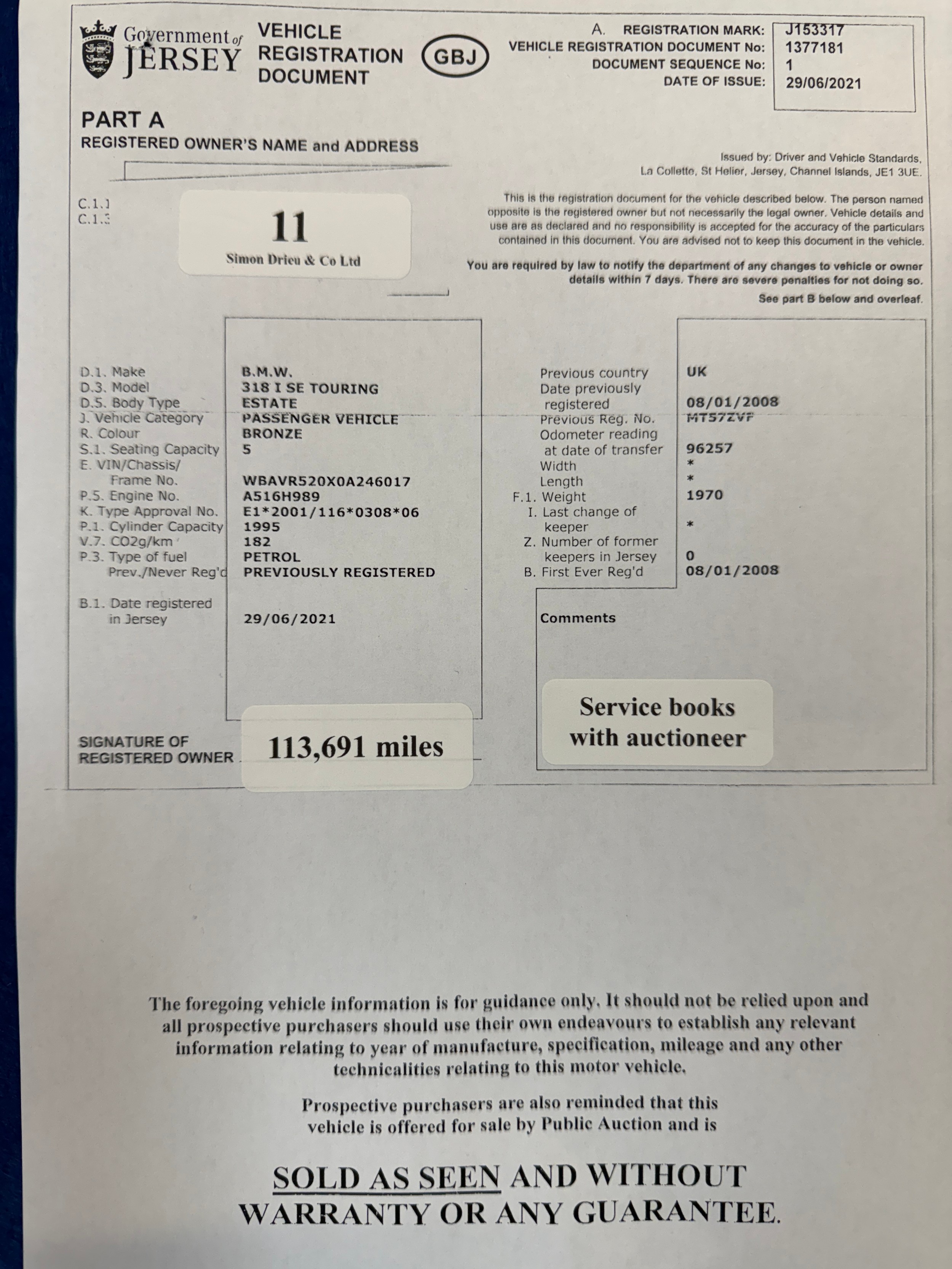A 2008 BMW 318i SE Touring 2.0 estate J153317 (petrol/manual), odometer reading 113,691 miles