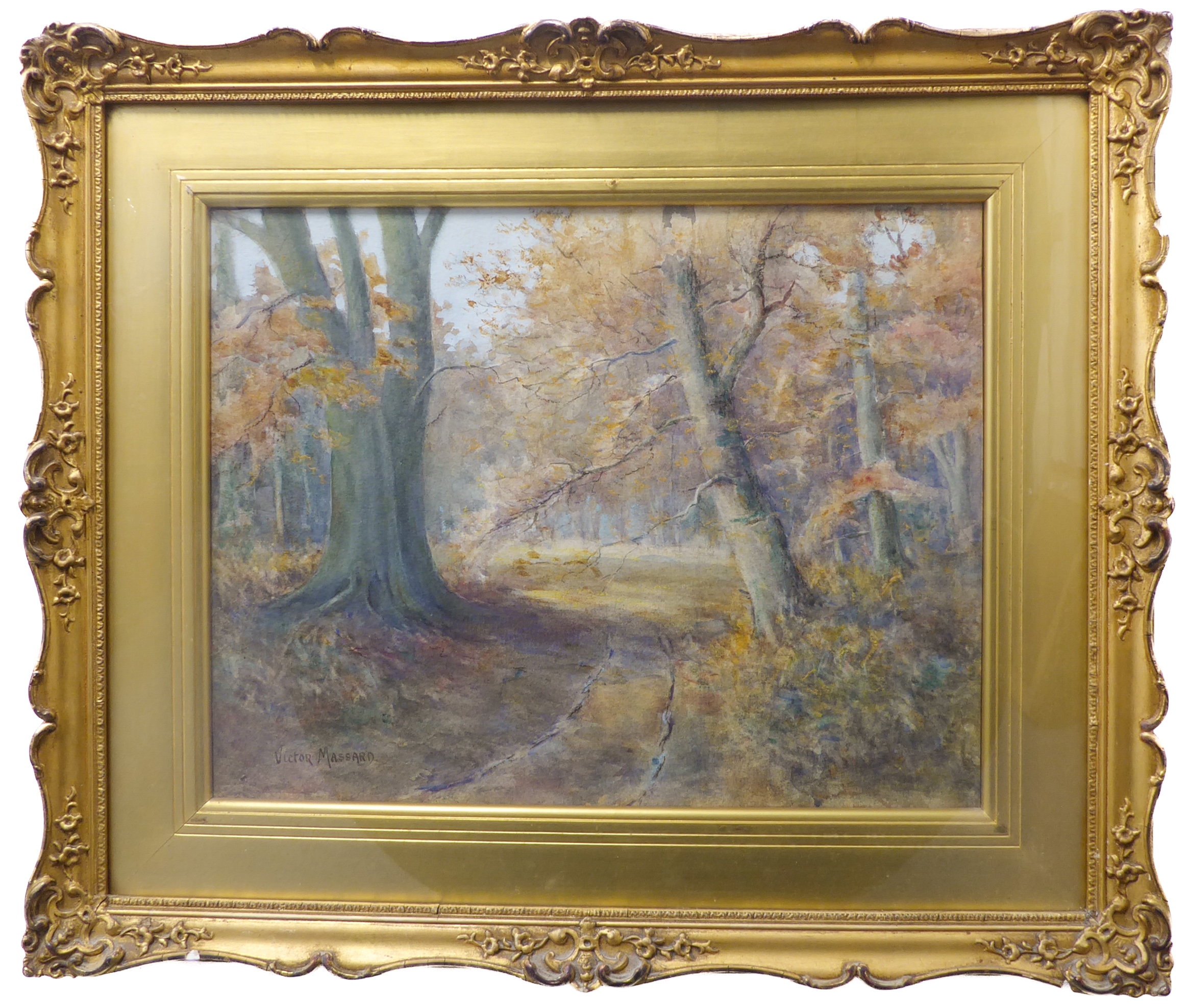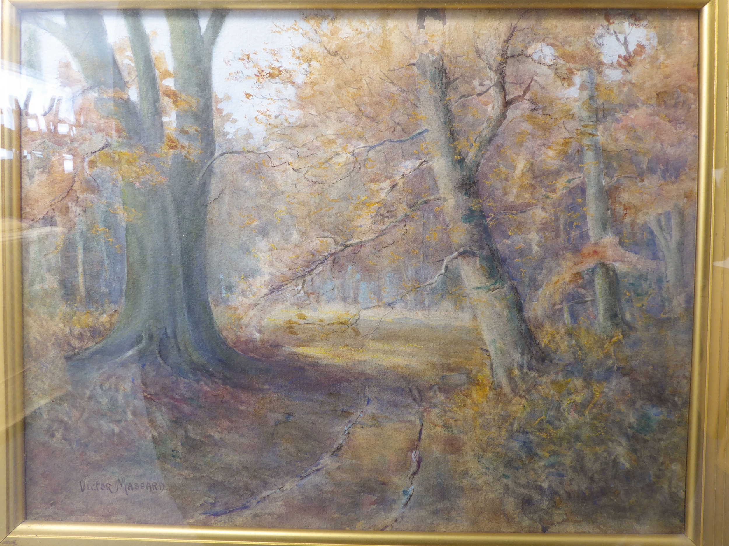 F VICTOR MASSARD (Scottish, 19th century) - 'In Cadzow Forest', watercolour, signed lower left (13¾ x 17½in; 34.5 x 44.5cm). Faded