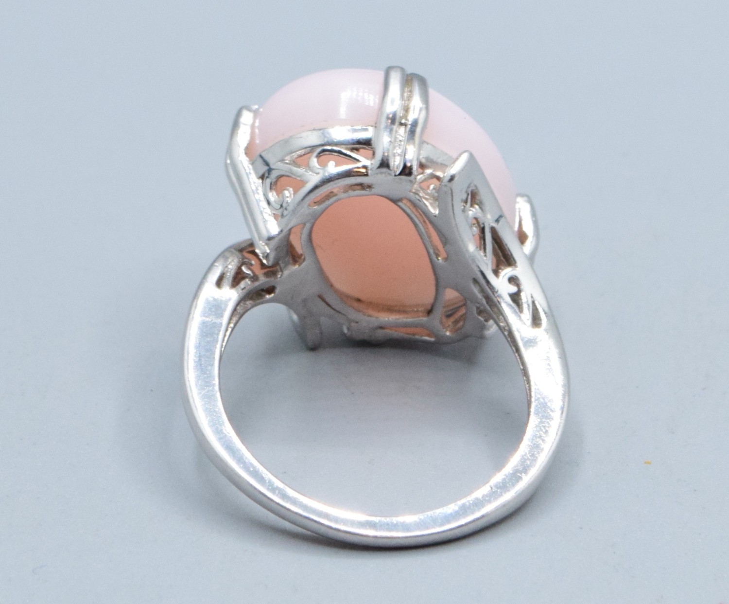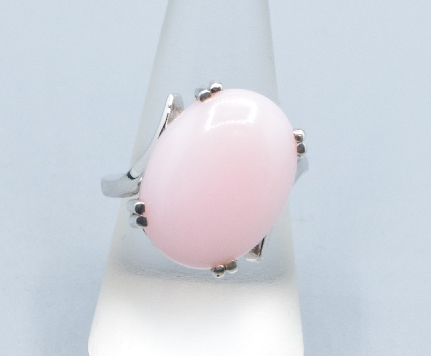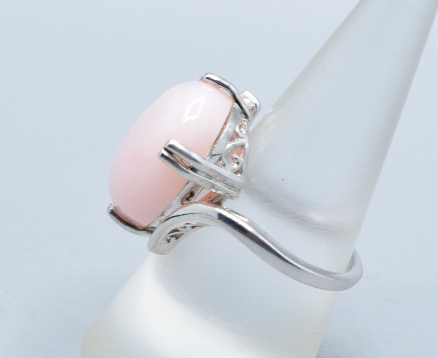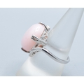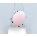 925 silver ladies contemporary design cabochon unpolished Pink Opal solitaire ring in a claw twist design size P