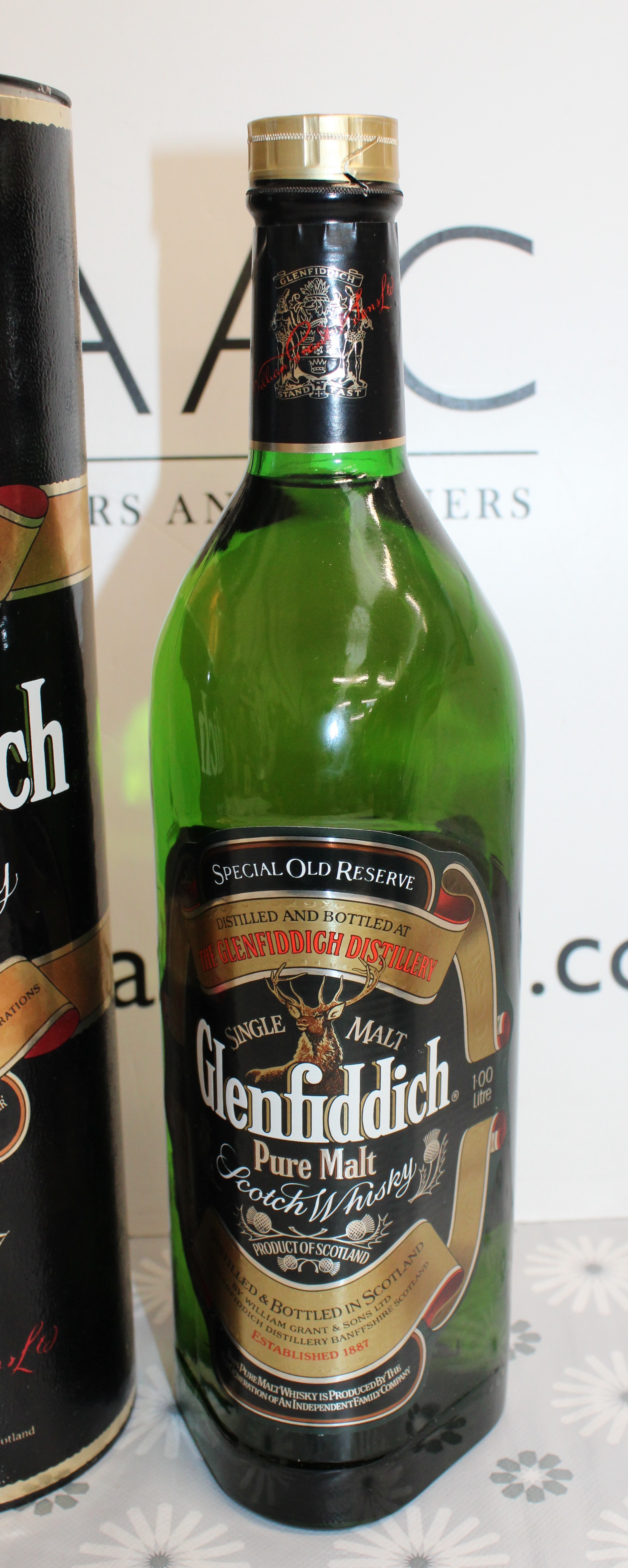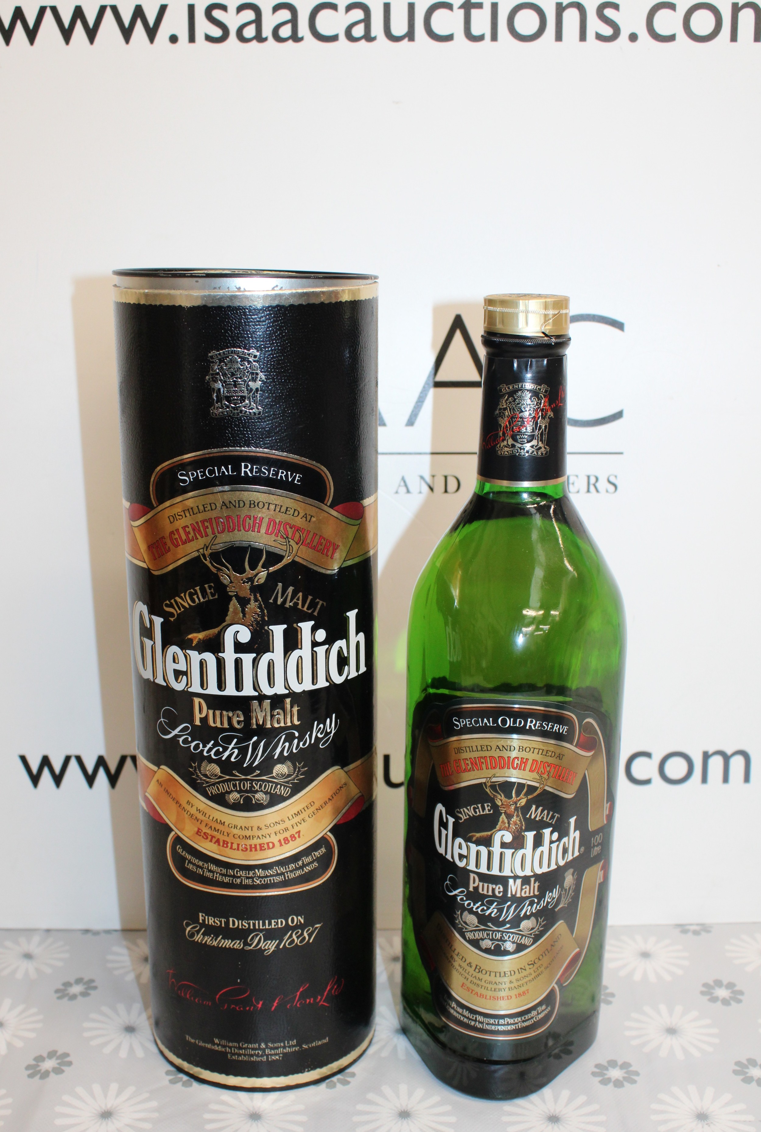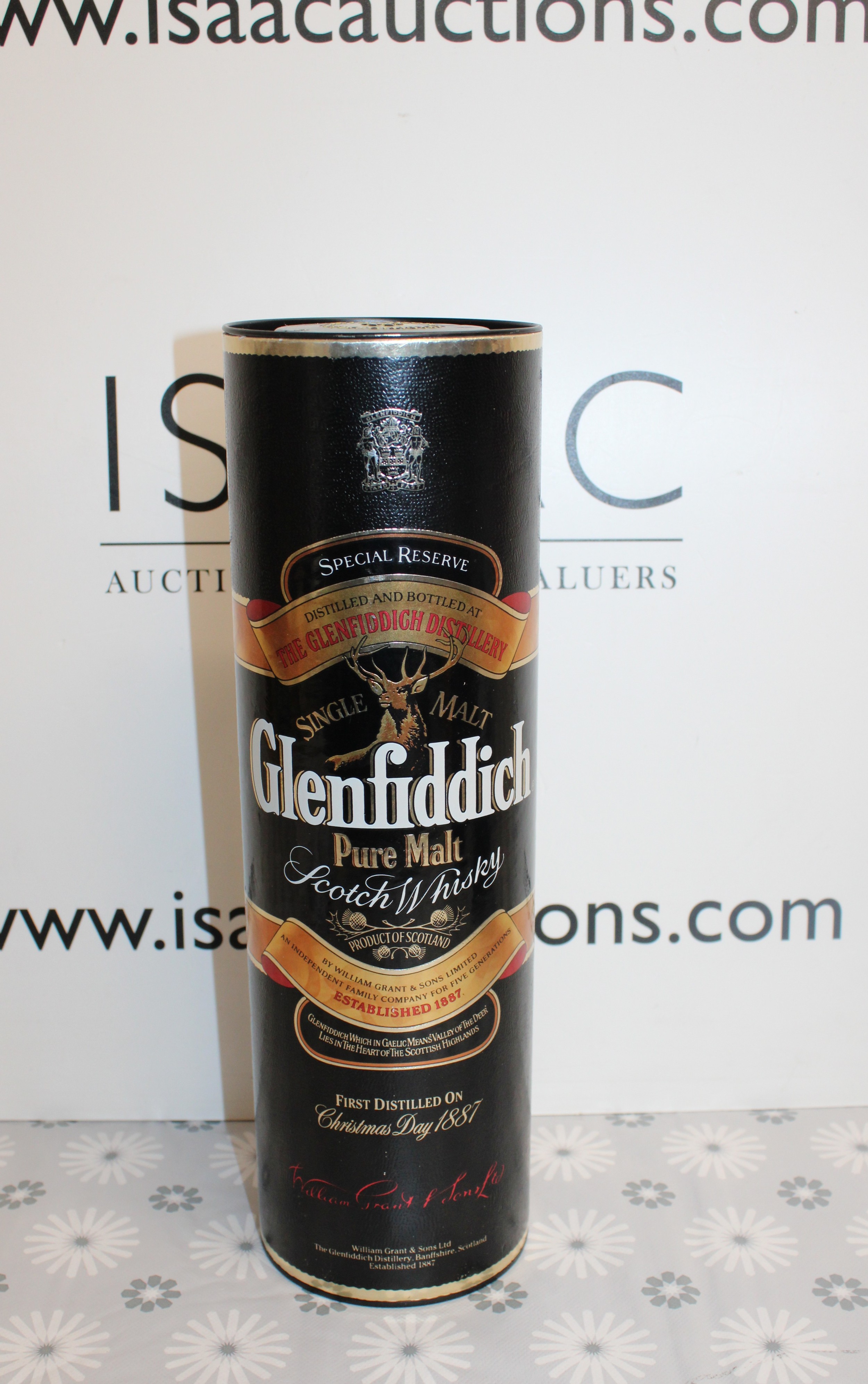 One Tubed Litre Bottle Glenfiddich Special Old Reserve Pure Malt Whisky 43% 1980s