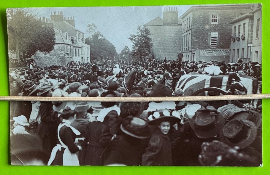 Real photographic postcard. - Top of The Grange Guernsey - The funeral of General Auld, 21st February 1911.