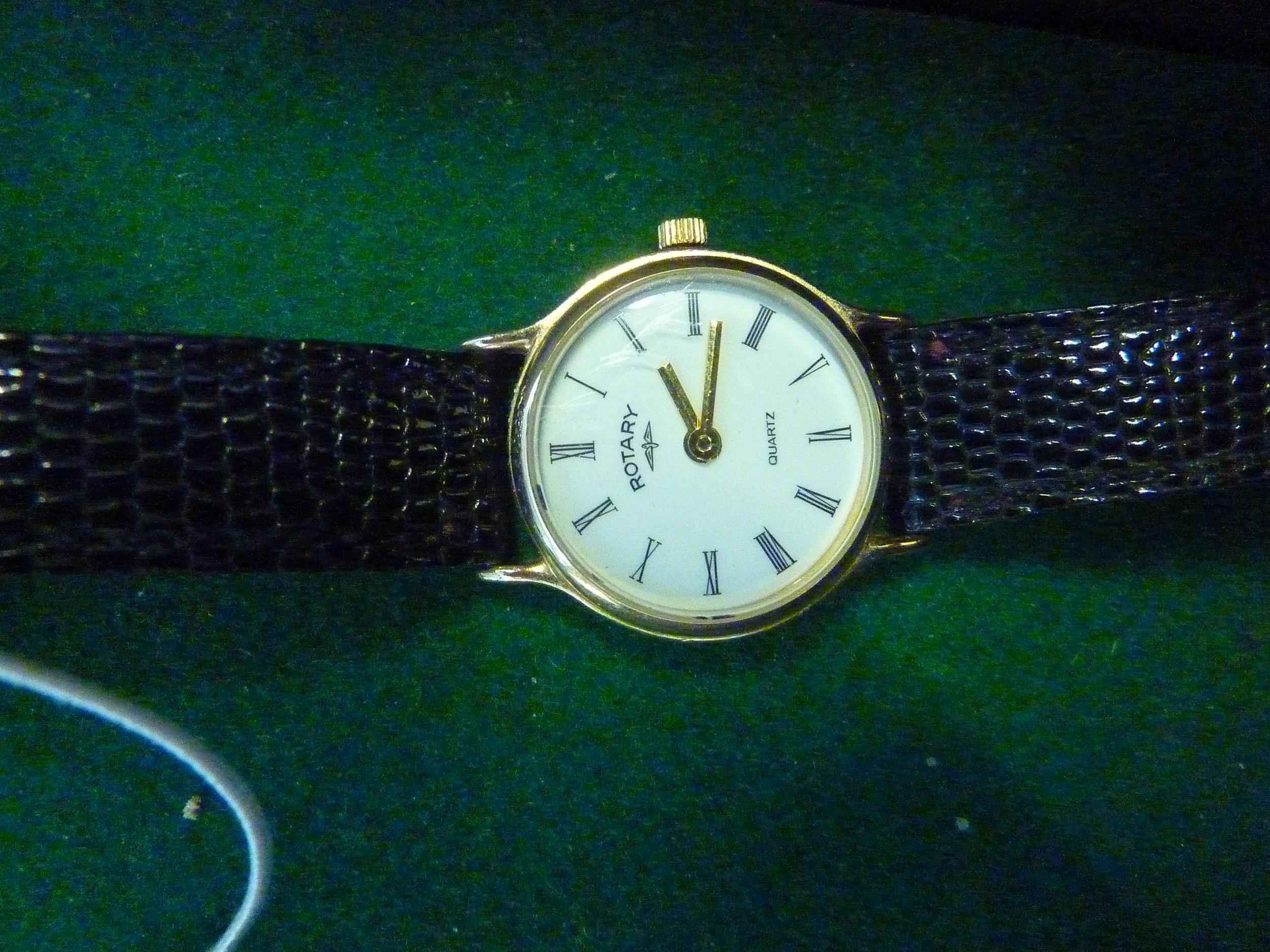A 9ct gold Rotary ladies wrist watch with leather strap