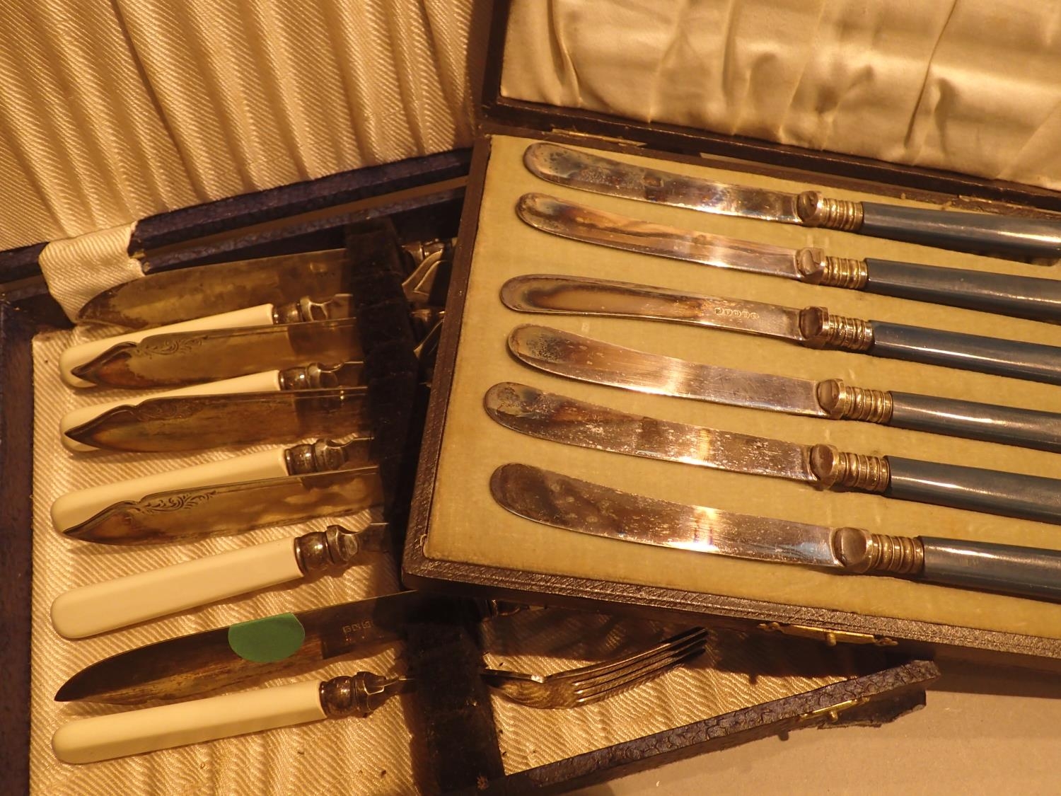 Two boxed sets of silver plated cutlery. Not available for in-house P&P, contact Paul O'Hea at Mailboxes on 01925 659133