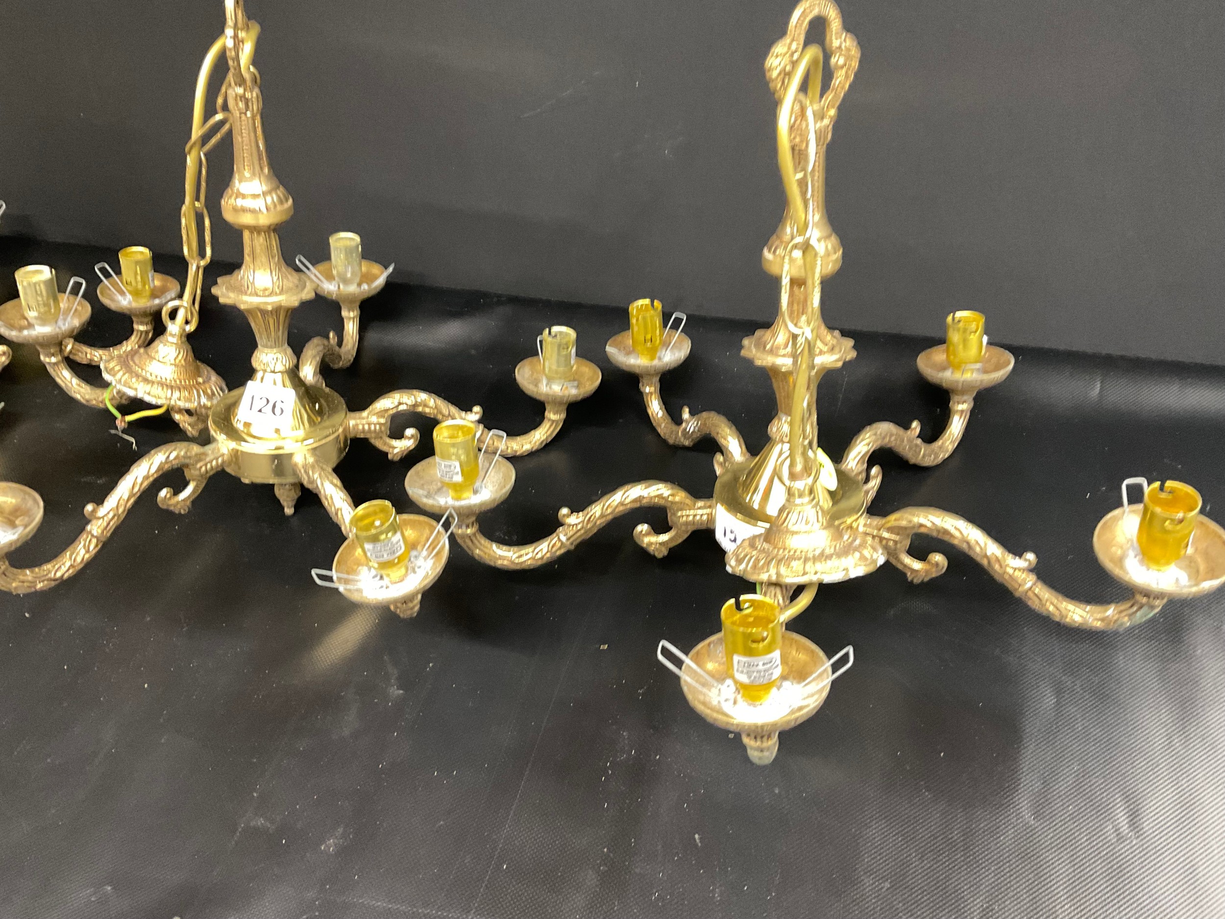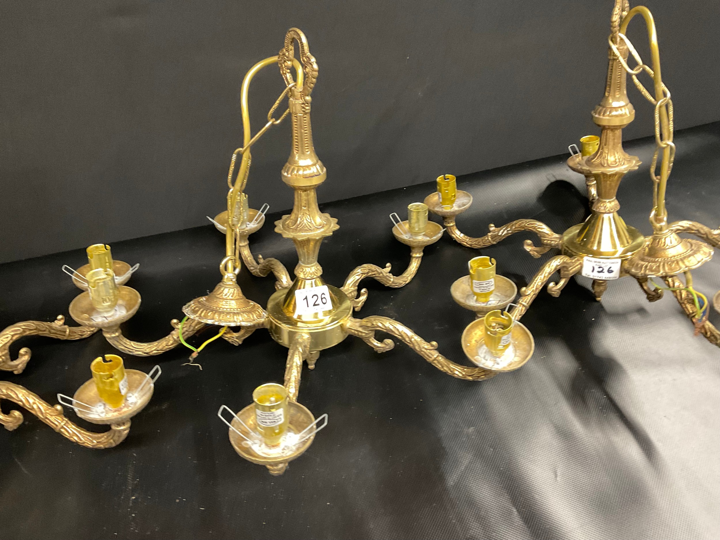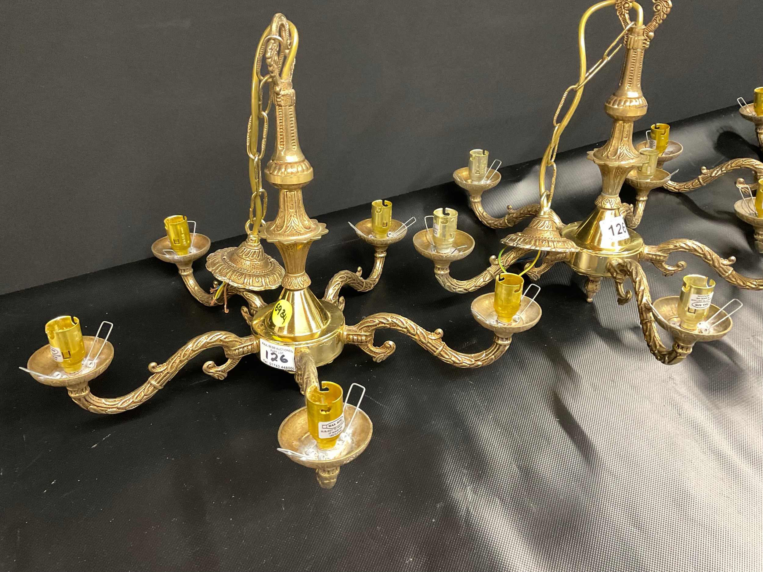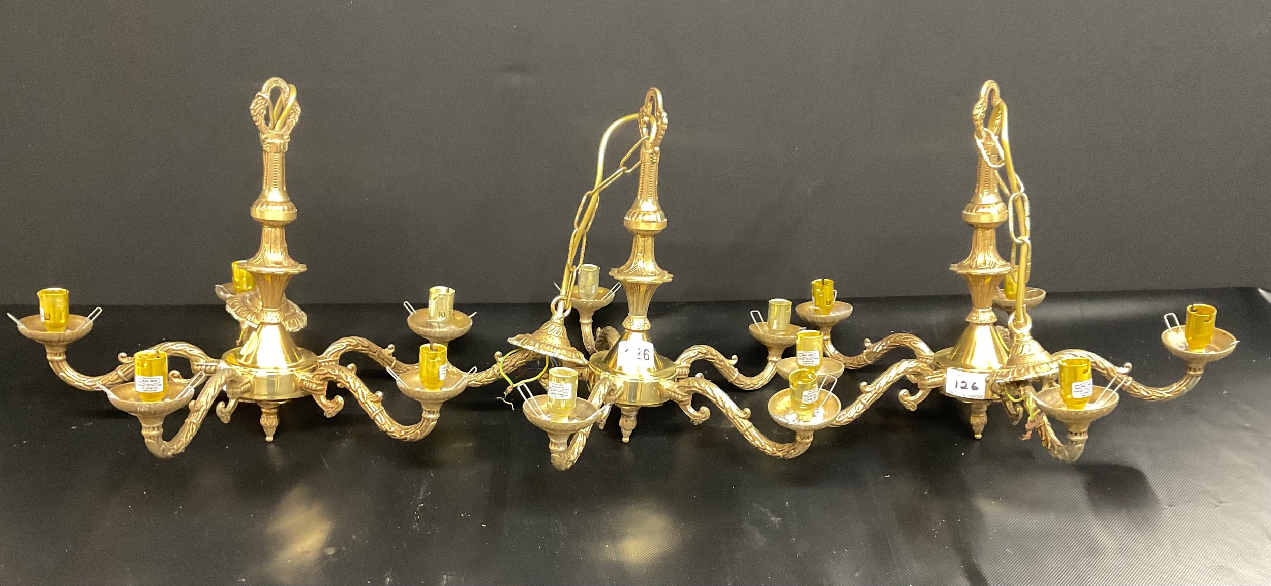 SET OF 3 VINTAGE FIVE ARM BRASS CHANDELIERS