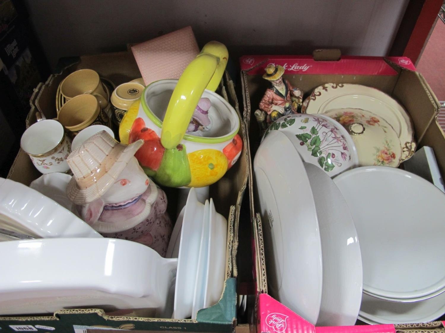 Ridgway 'White Mist' Dinnerware, Portmeirion 'Botanic Garden' bowl, biscuit jar etc:- Two Boxes.