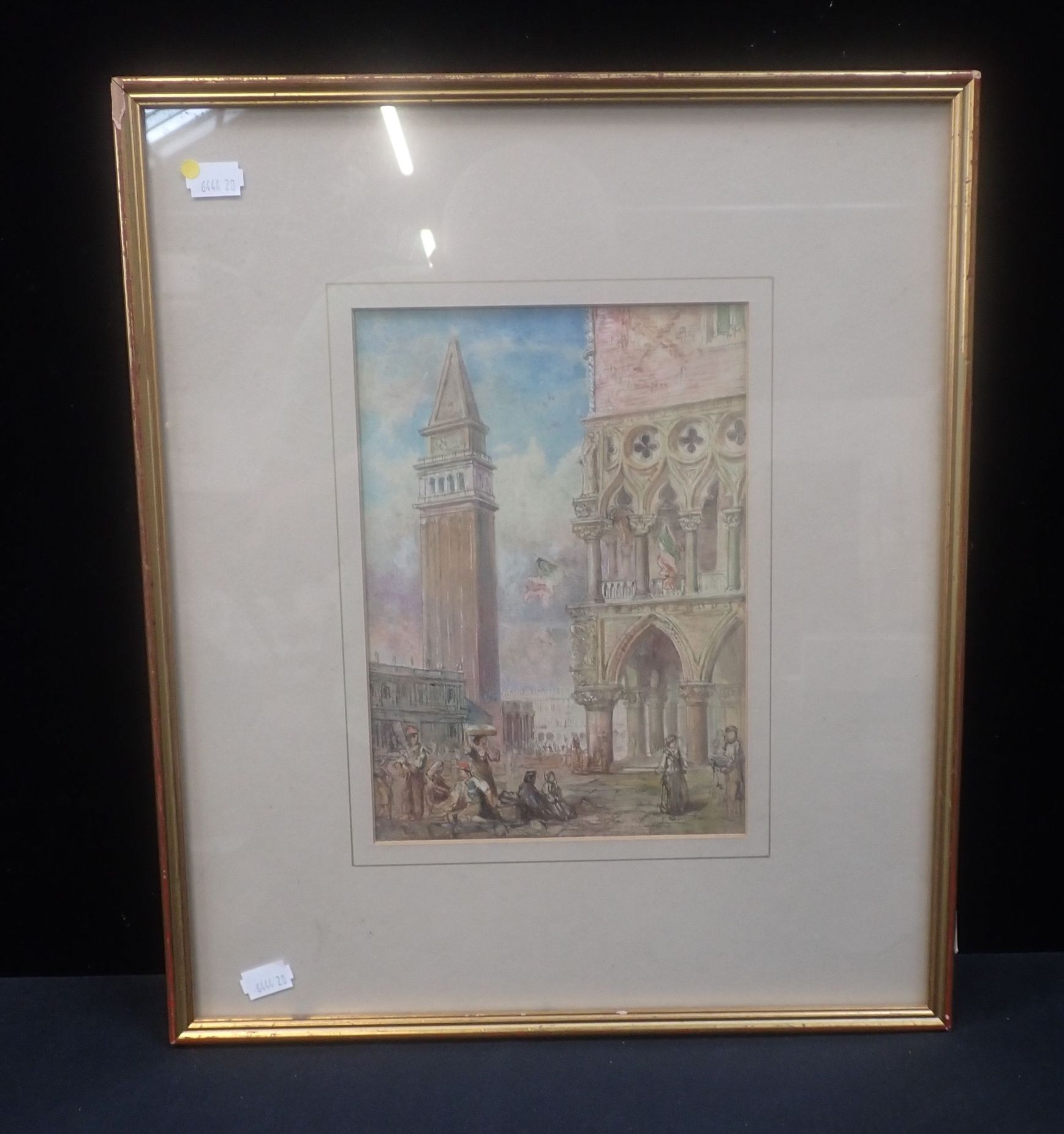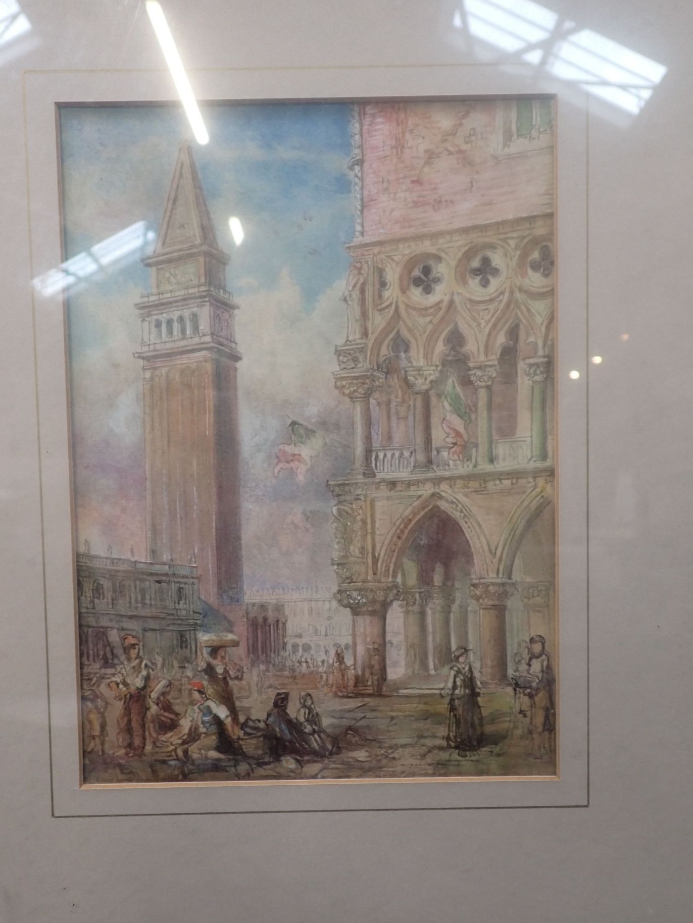 VIEW OF THE DOGE'S PALACE AND THE CAMPANILE, VENICE watercolour, 19th century 25 x 17cm plus frame