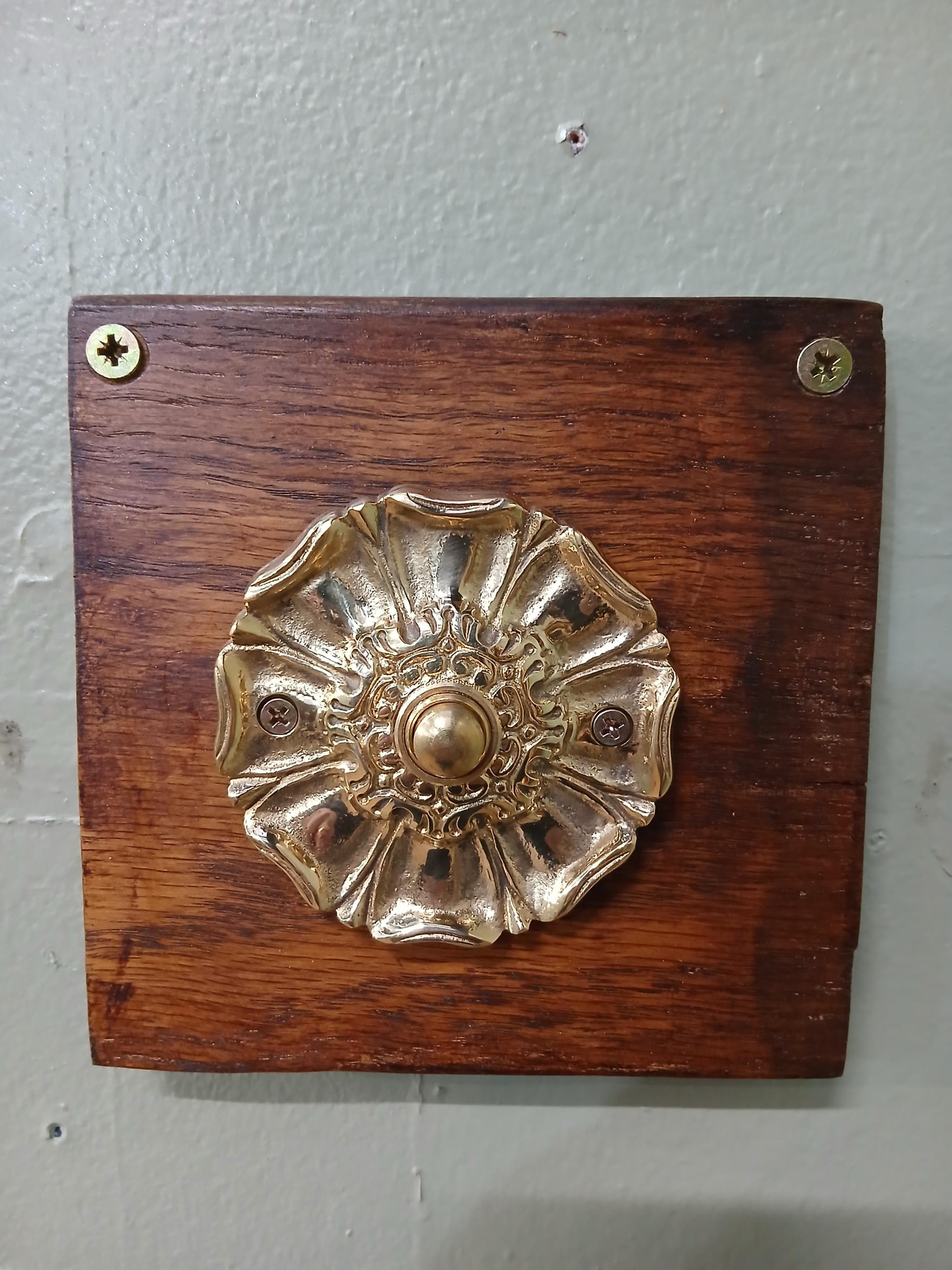 Solid brass door bell push. {Dia 9cm x SD 2cm }. NOT AVAILABLE TO VIEW IN PERSON.