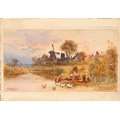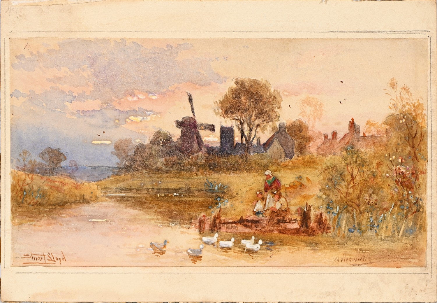 Walter Stewart Lloyd RBA (1845-1929) - Feeding the Ducks, Walberswick, signed and inscribed, watercolour, 14 x 25cm, unframed