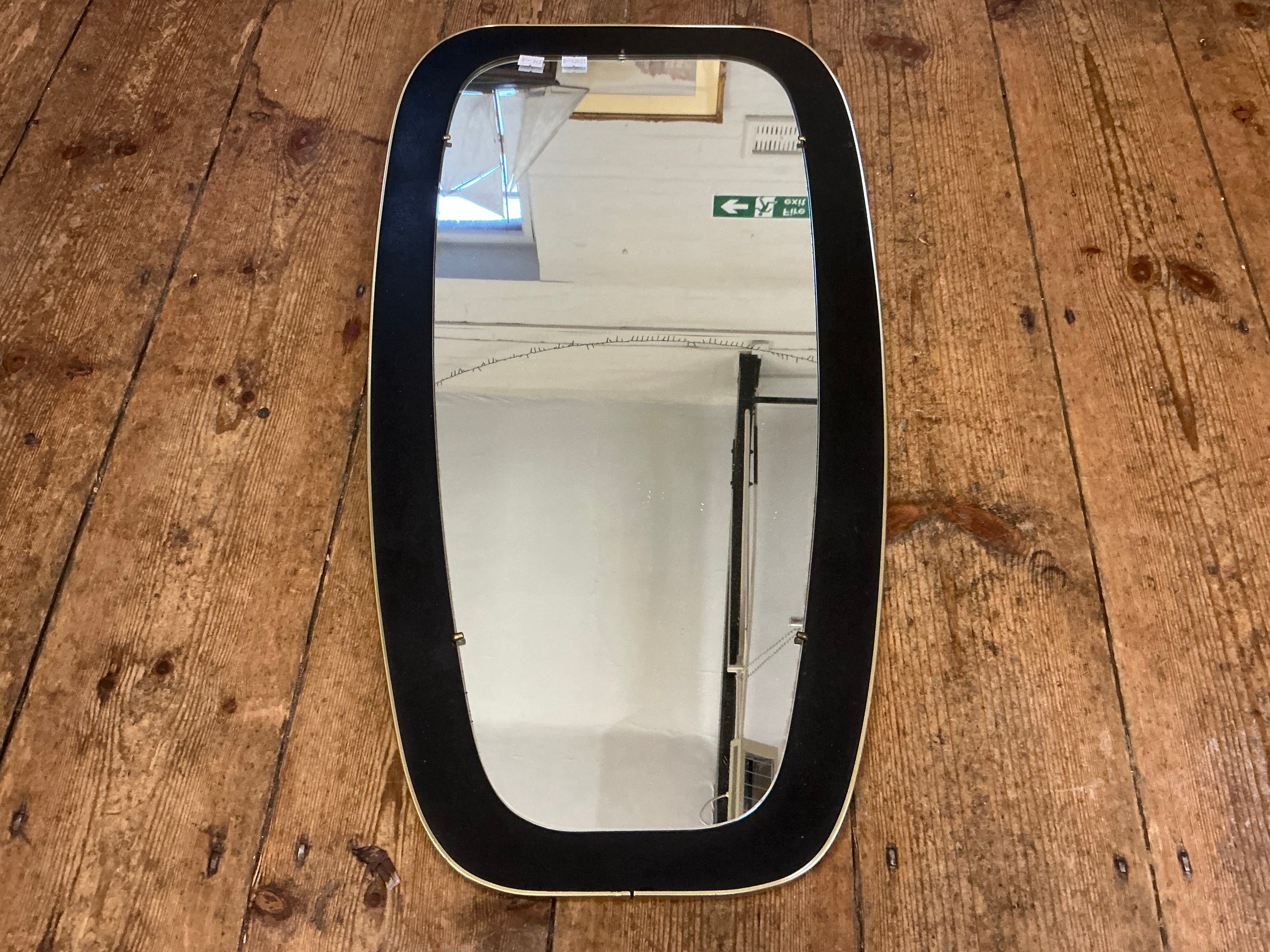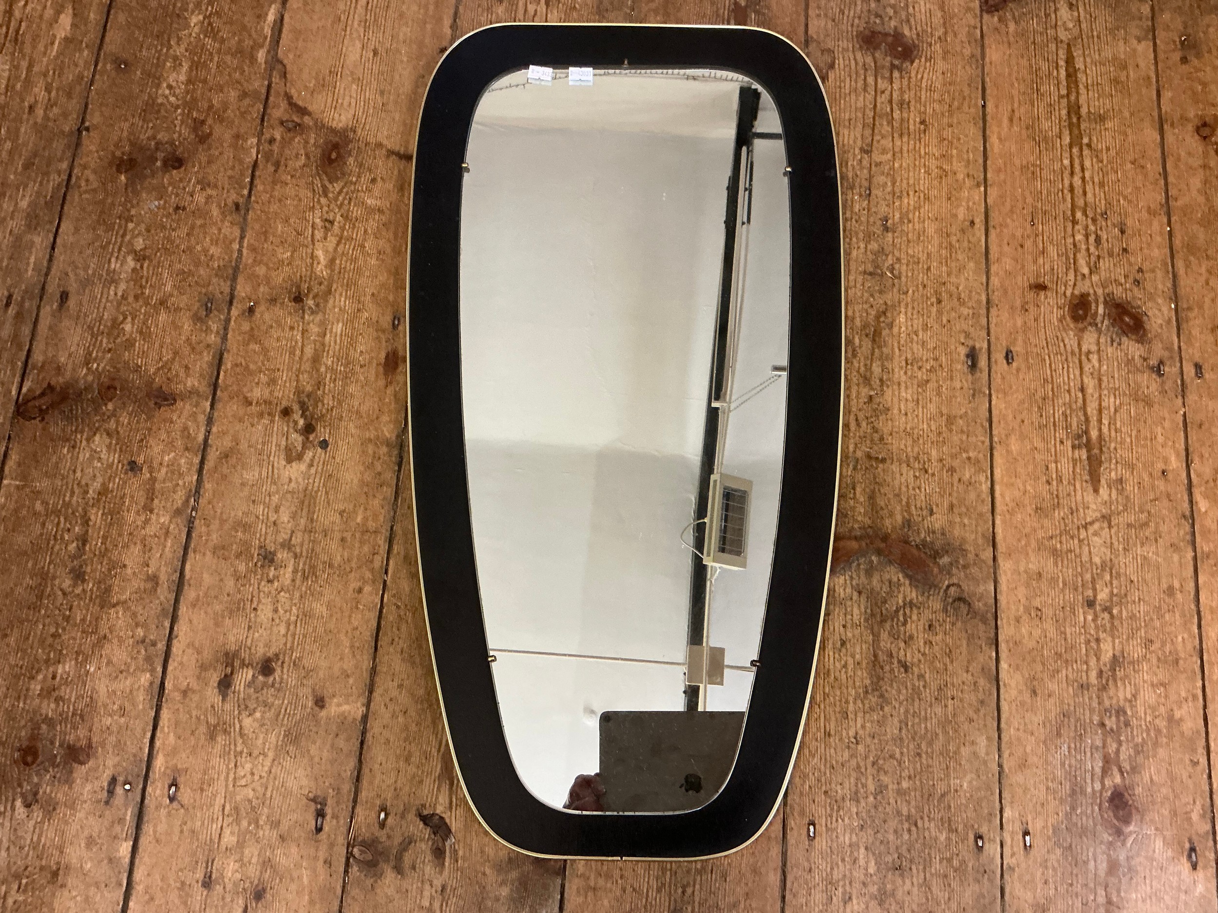 A Gold Framed Retro Mirror. Measuring: 38cms x 73cms.