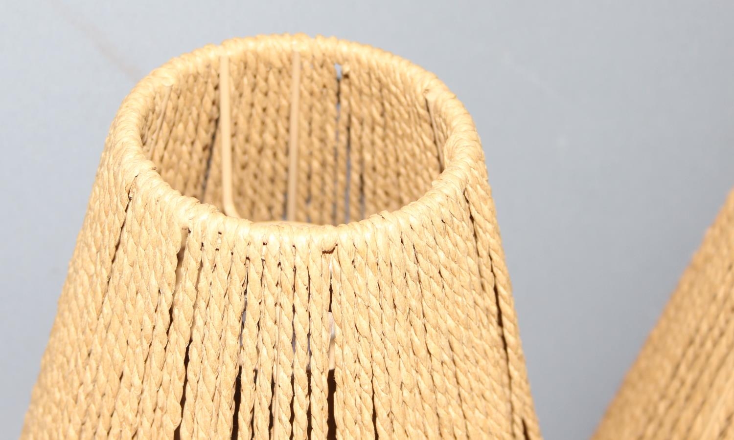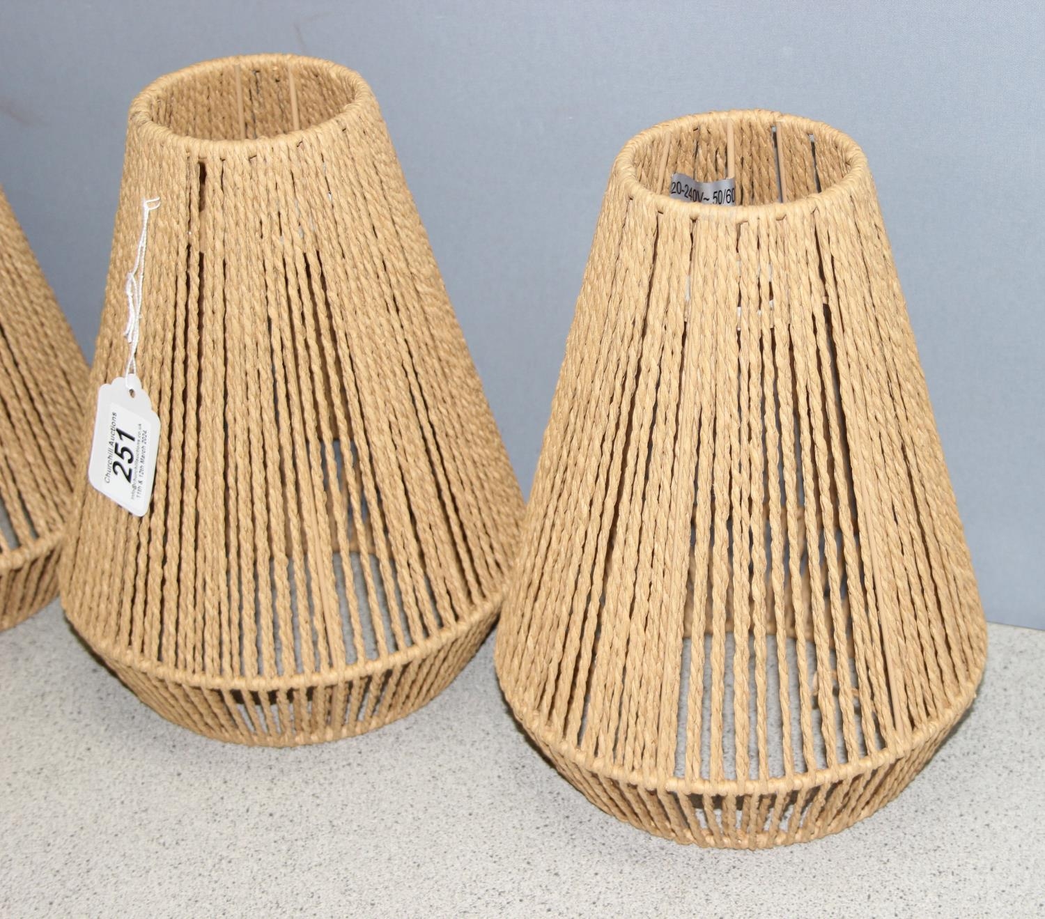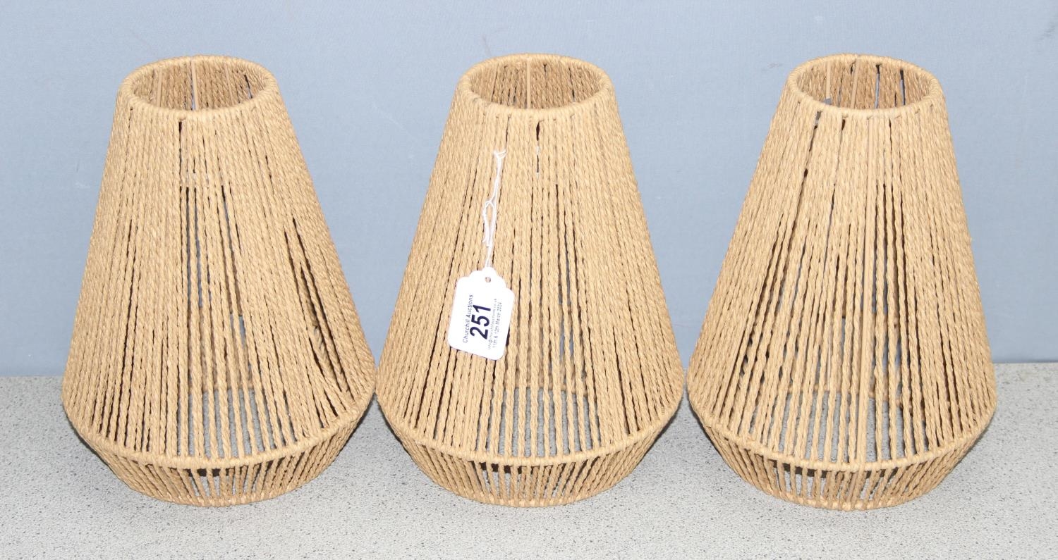 Set of 3 retro style seagrass strung pendant lightshades, approx 28cm H