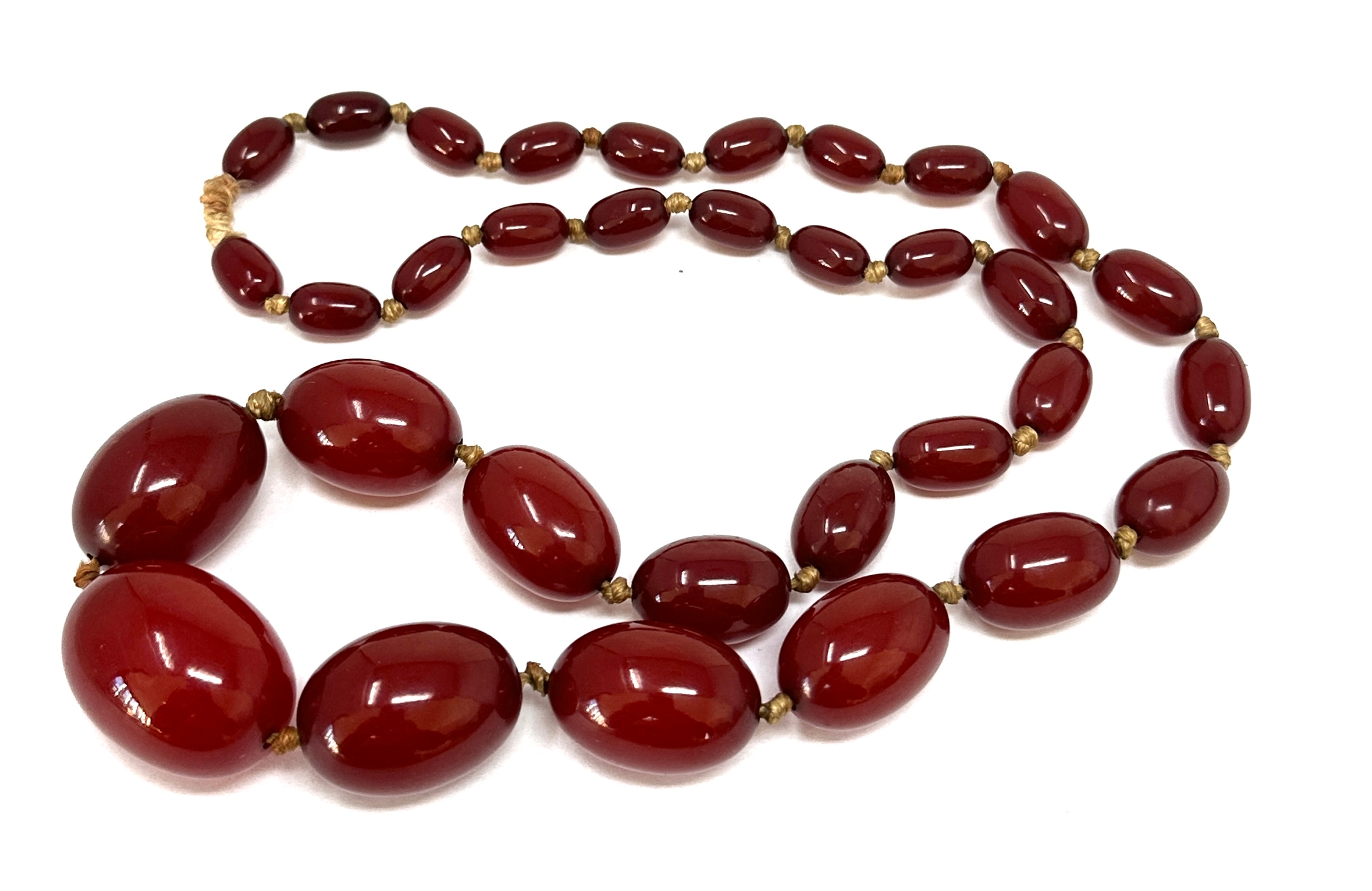 Vintage cherry amber / bakelite bead necklace weight 61g