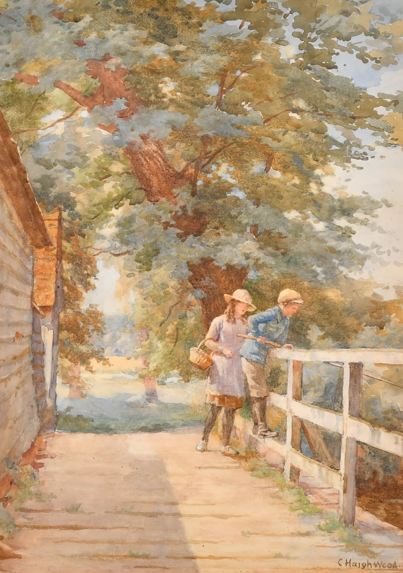 Charles Haigh-Wood (1854-1927) British. Fishing off a Bridge, Watercolour, Signed, 19" x 13.75" (48.2 x 34.9cm)