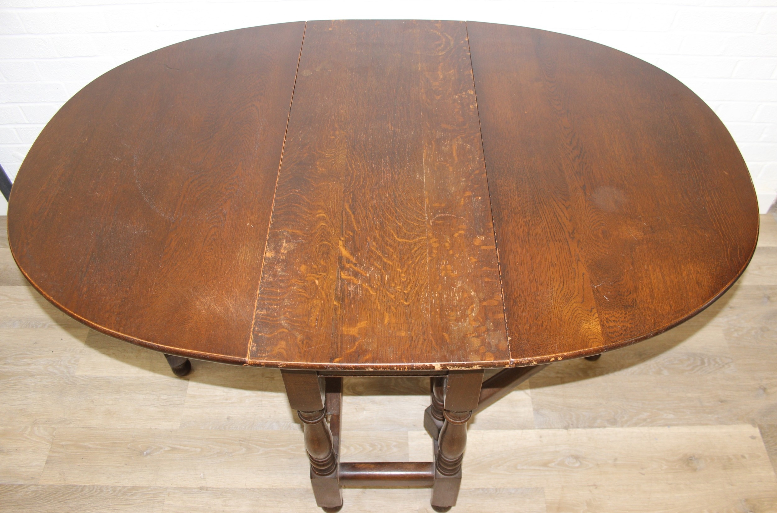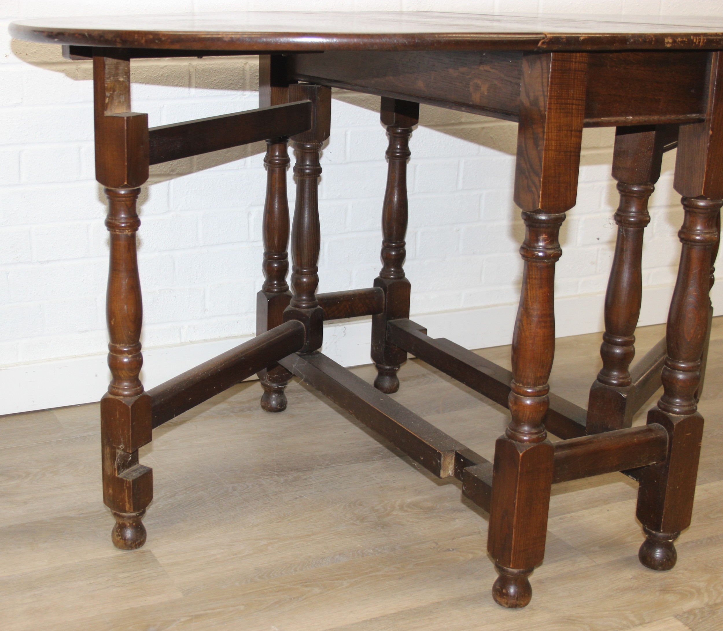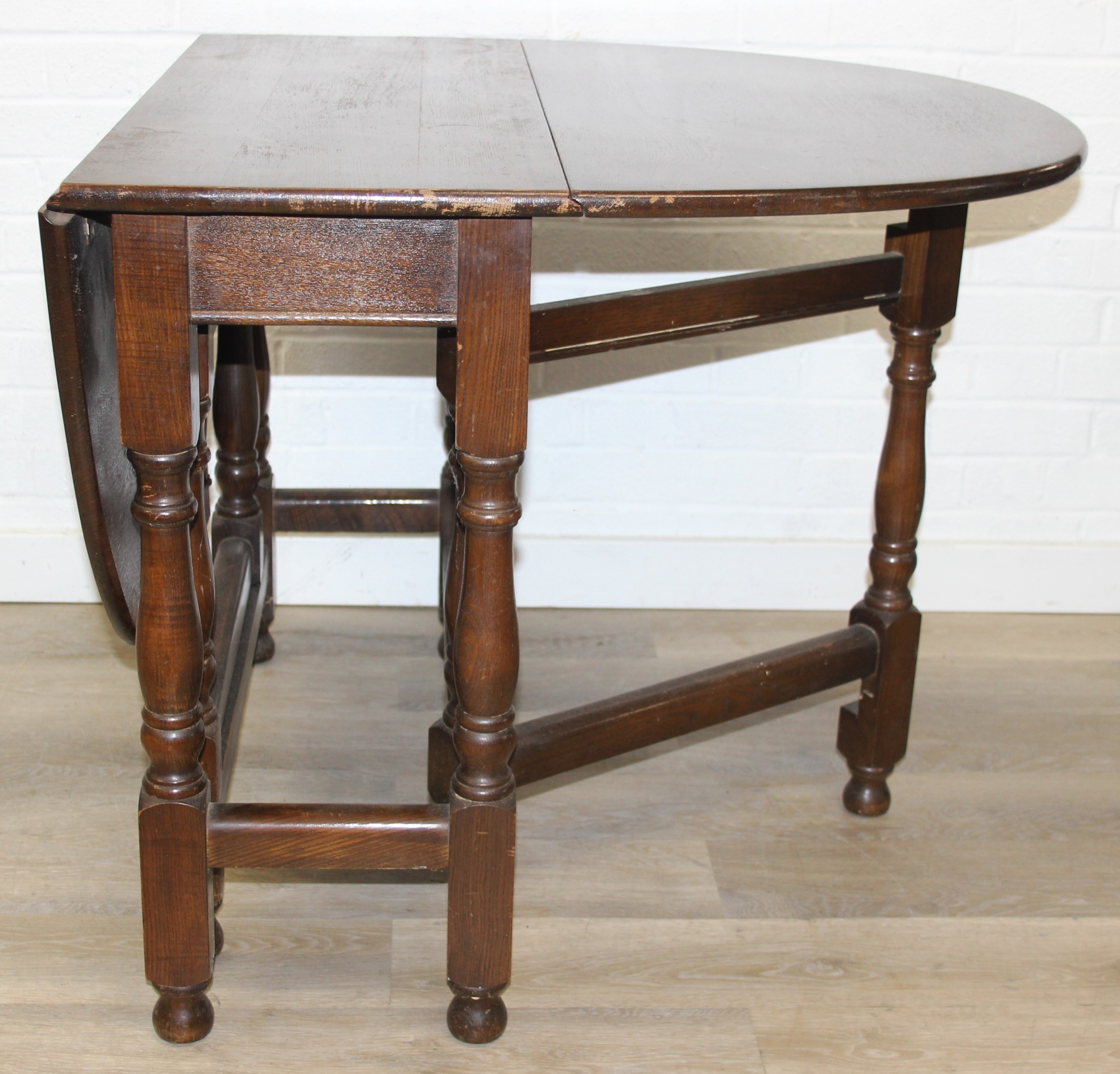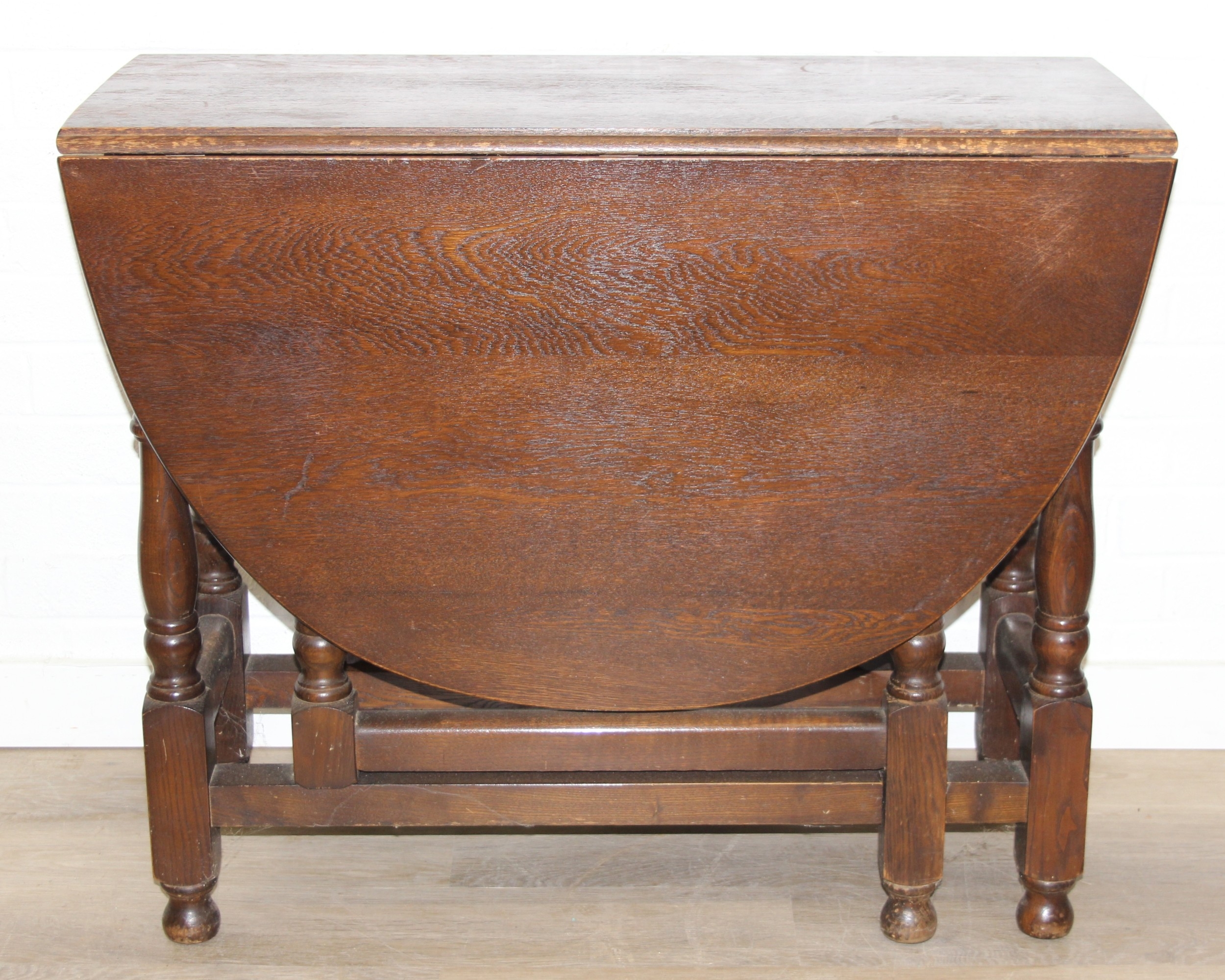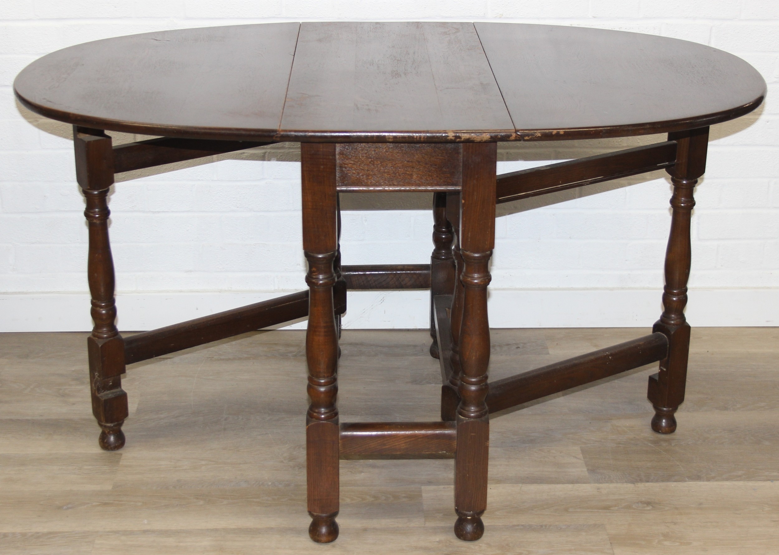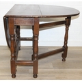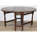 A 17th century style Oak gate-leg table with turned legs, 92cm x 41cm (137cm when open) x 77cm