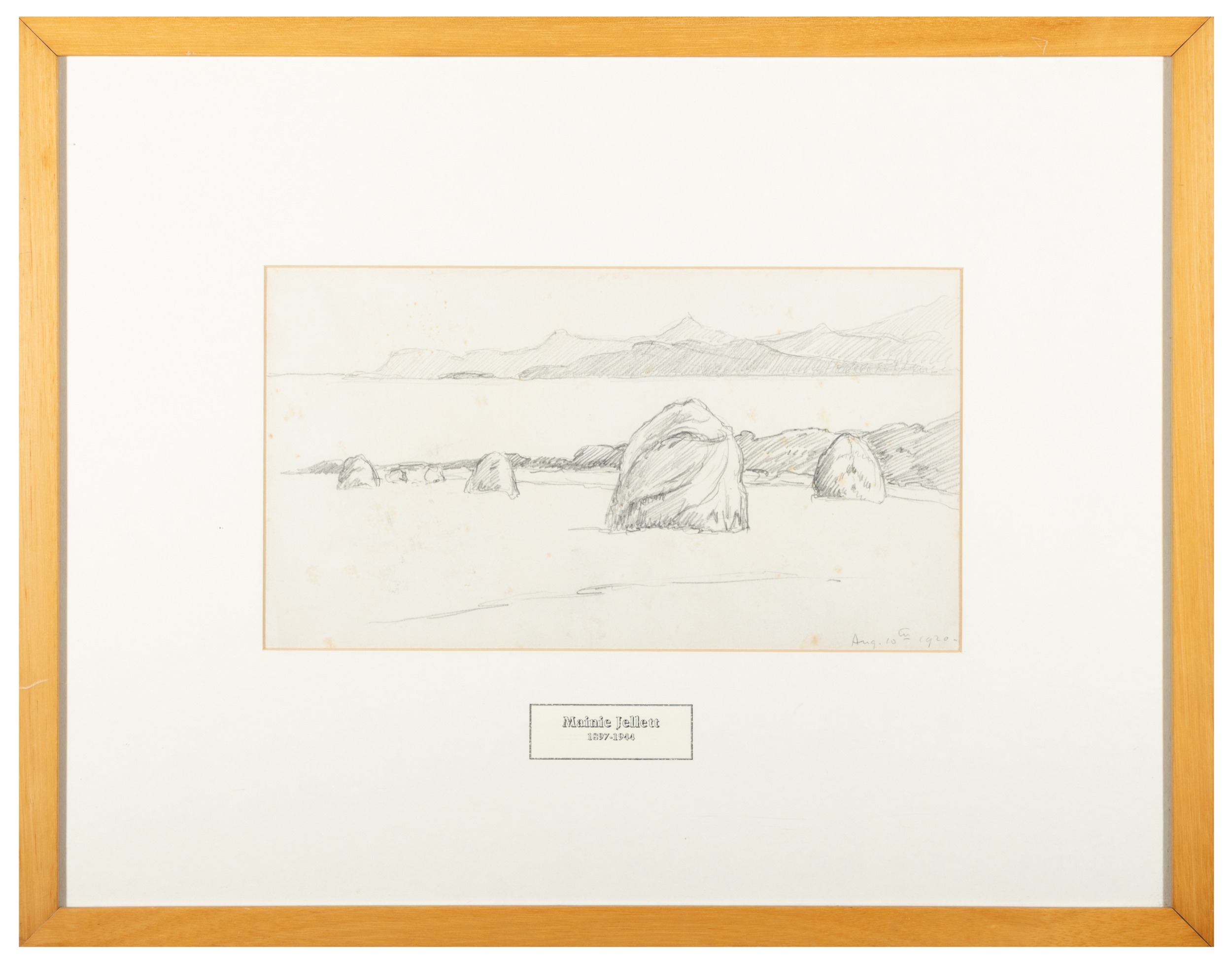Mainie Harriet Jellett (1897-1944) Haystacks Looking Towards Wicklow Mountain Pencil, 18 x 32cm Dated August 10th 1920