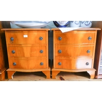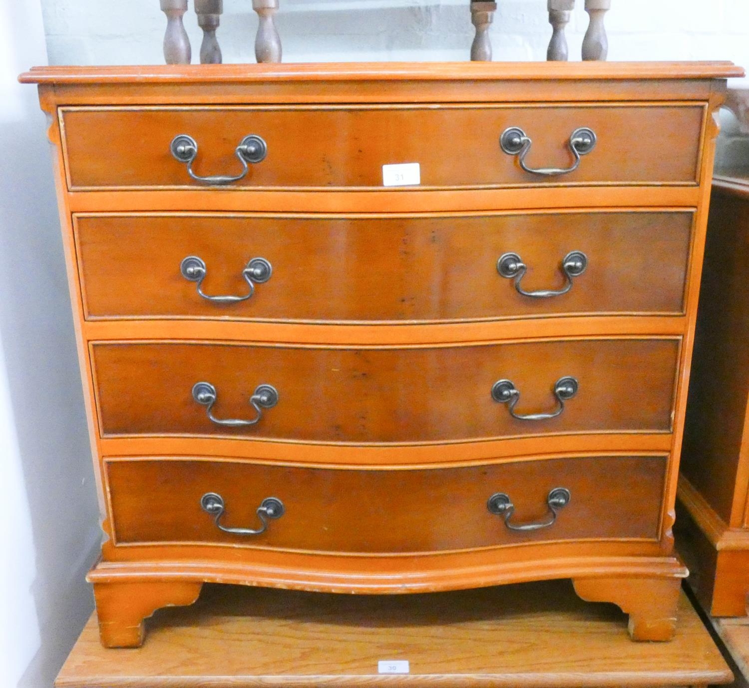 Reproduction yew wood serpentine front chest of four long drawers, 2'6 wide