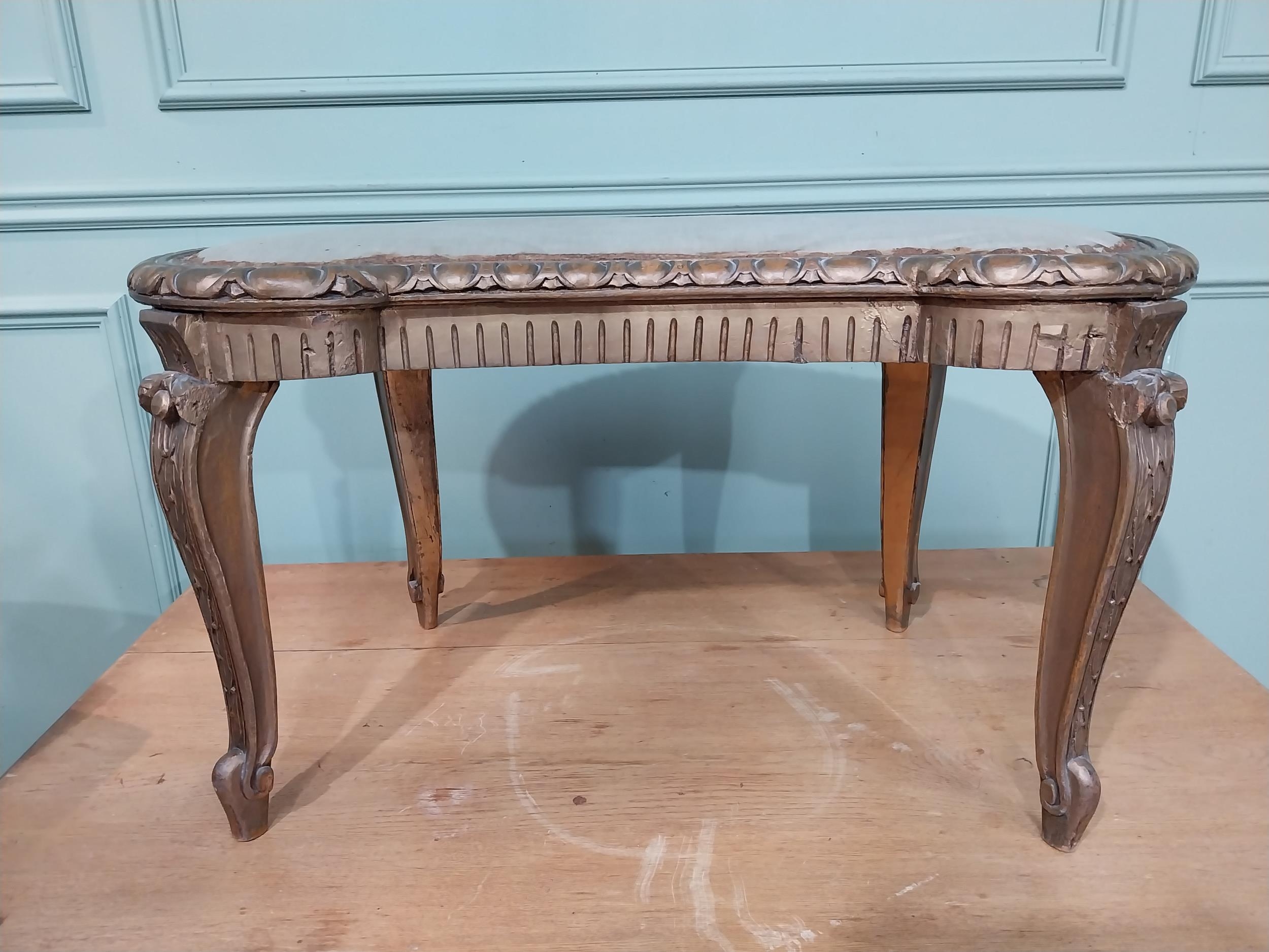 Early 20th C. gilt window seat on cabriole legs. {42 cm H x 75 cm W x 44 cm D}.