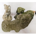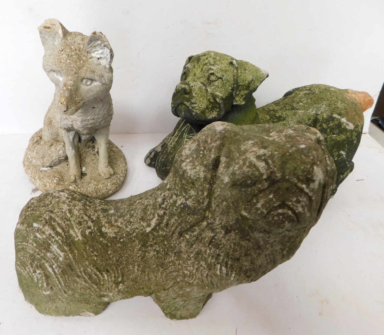Three cast stone garden ornaments; dogs