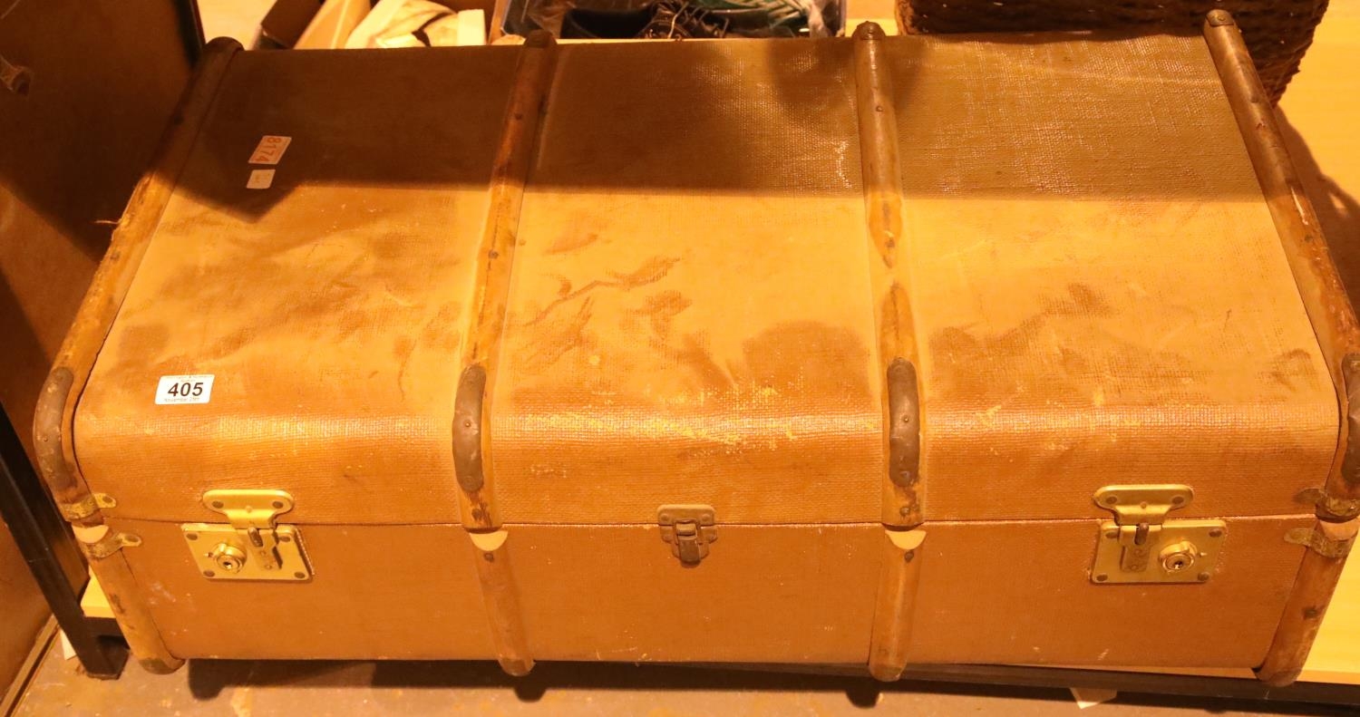 Wood bound cabin trunk with leather handles. Not available for in-house P&P