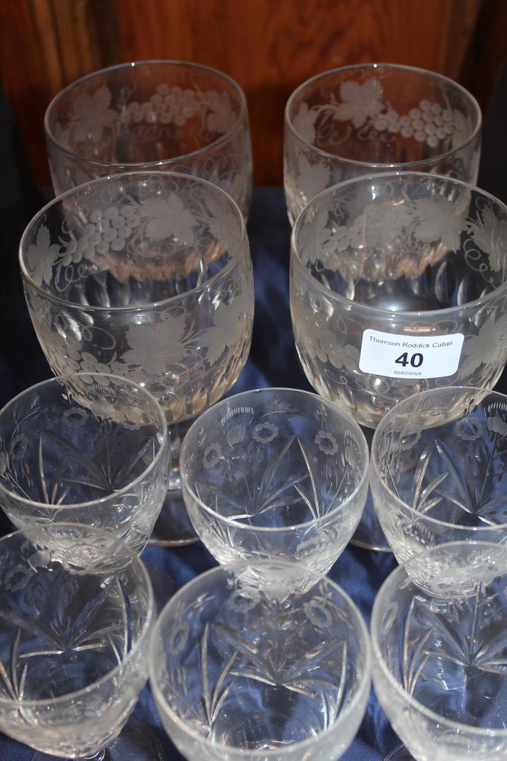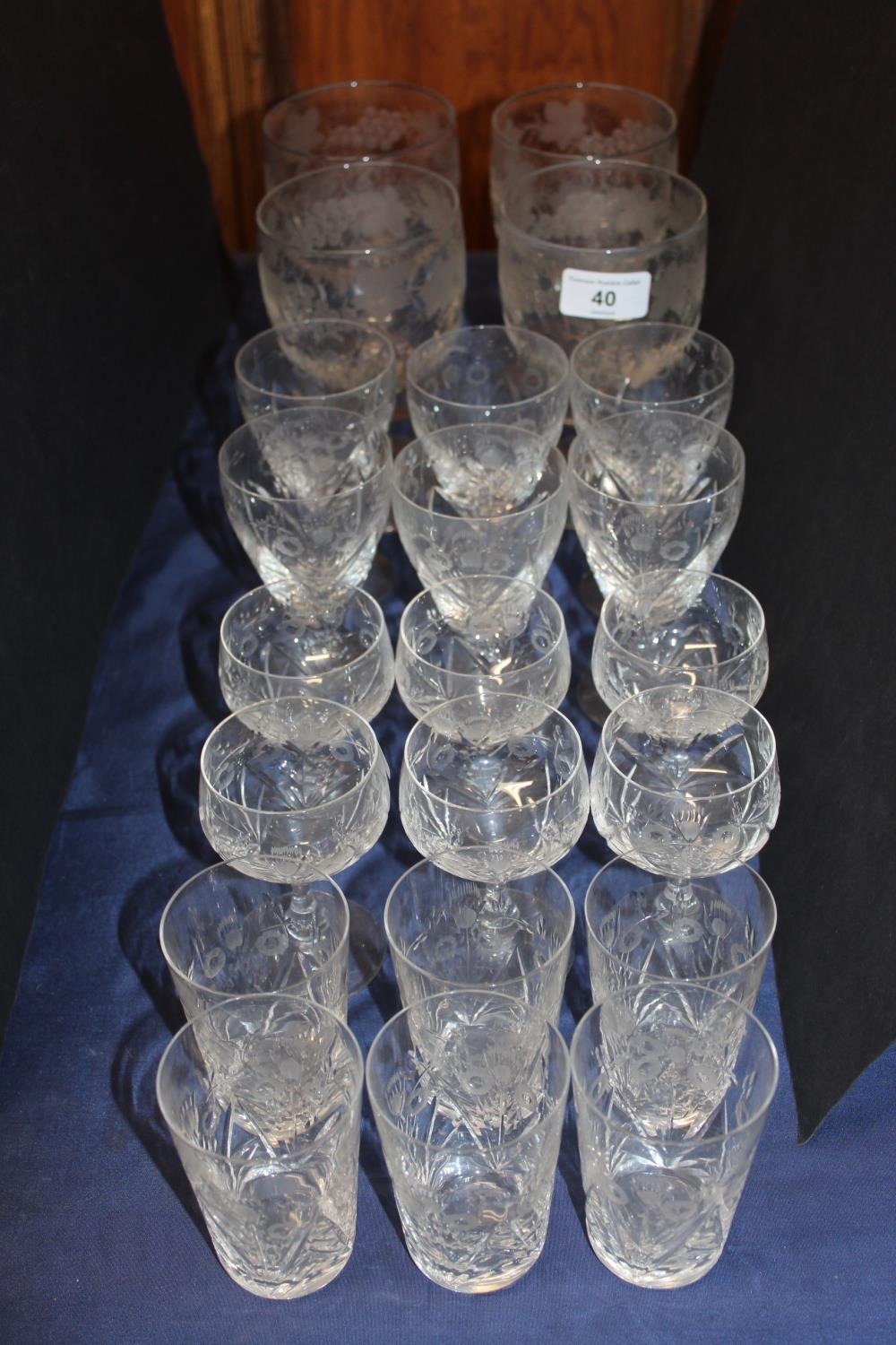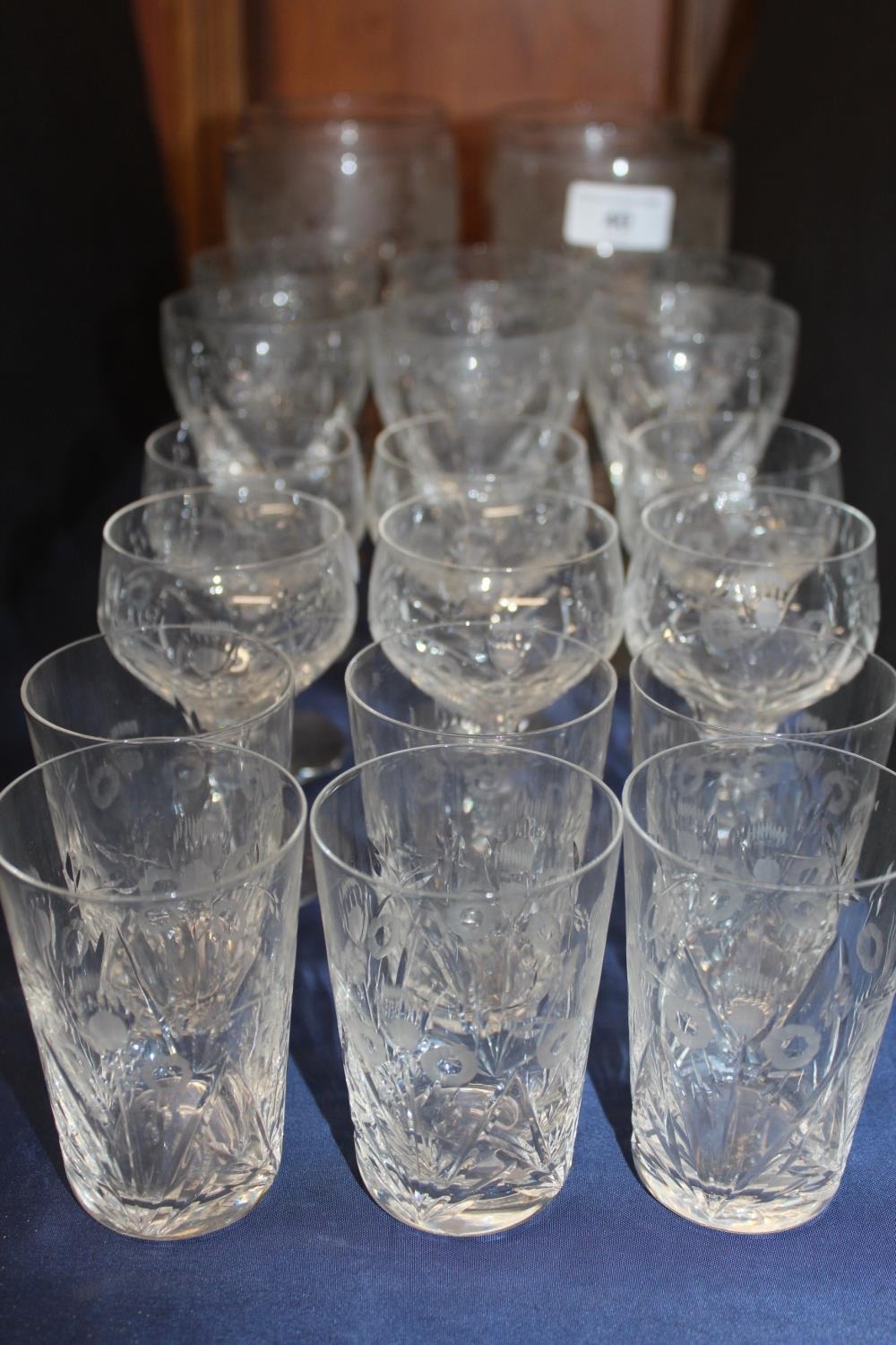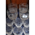 Four etched glass antique style rummers, and a part suite of Edinburgh Crystal glasses.