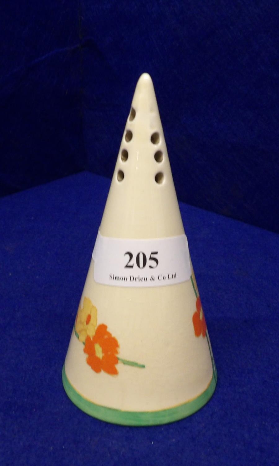 A Clarice Cliff Honey Bloom sugar sifter (a/f)