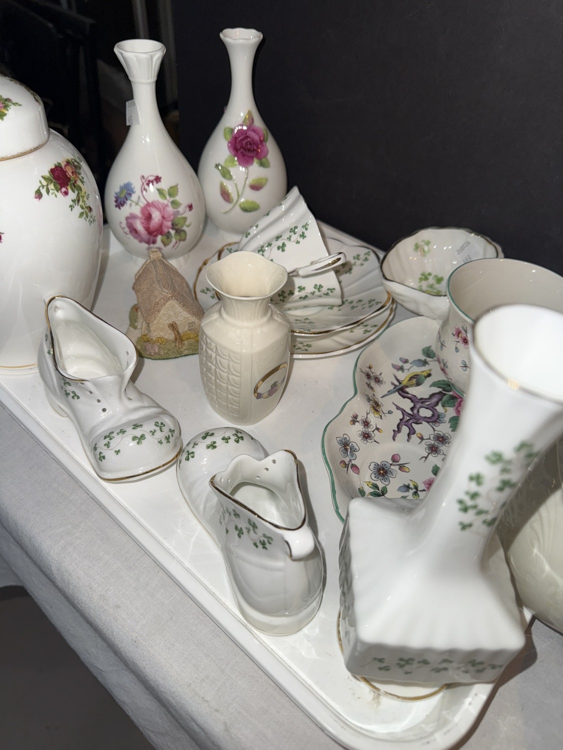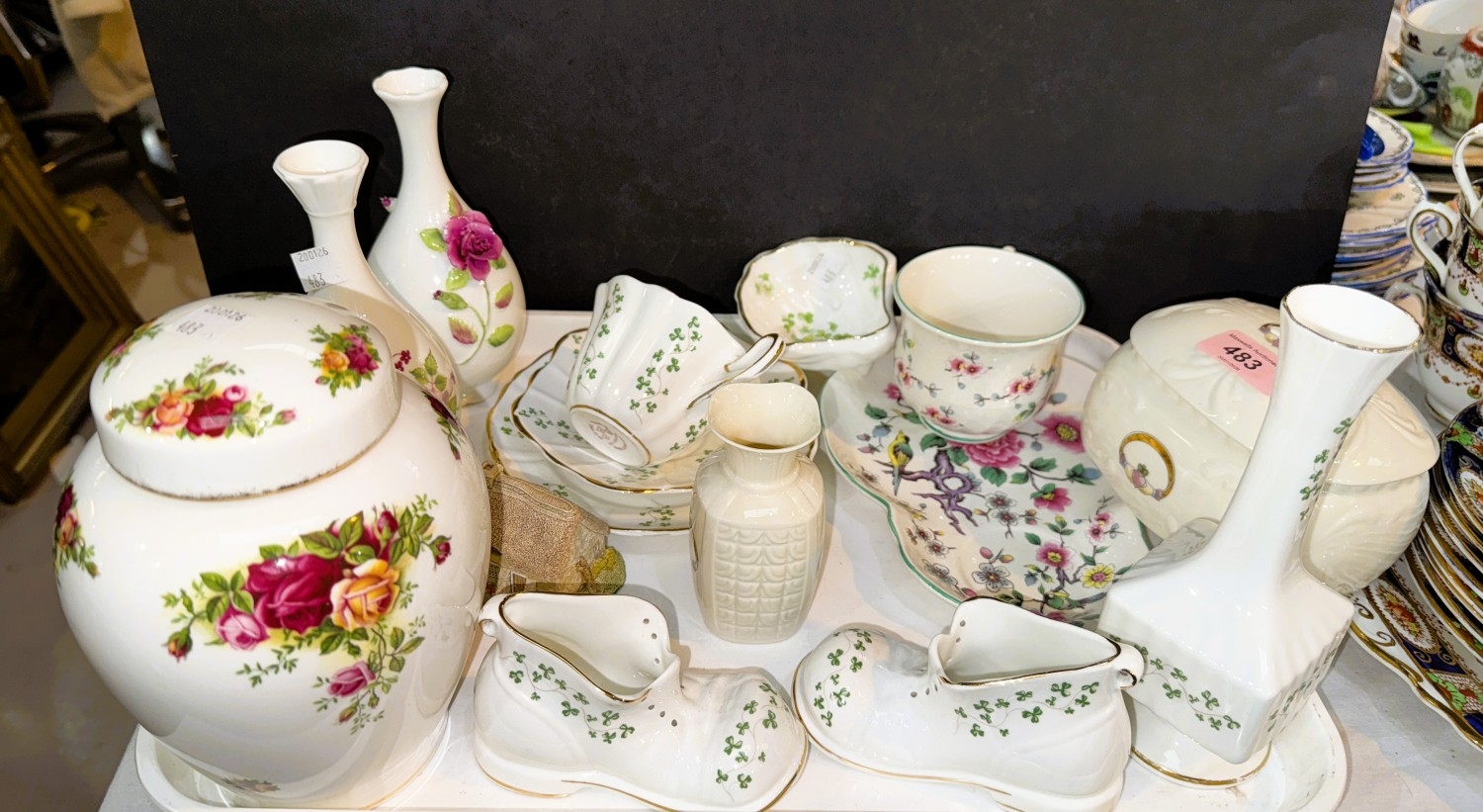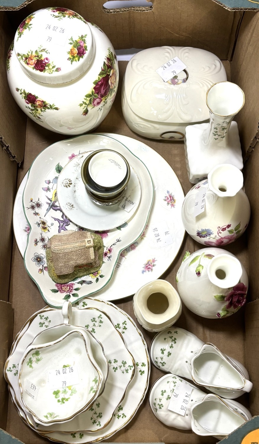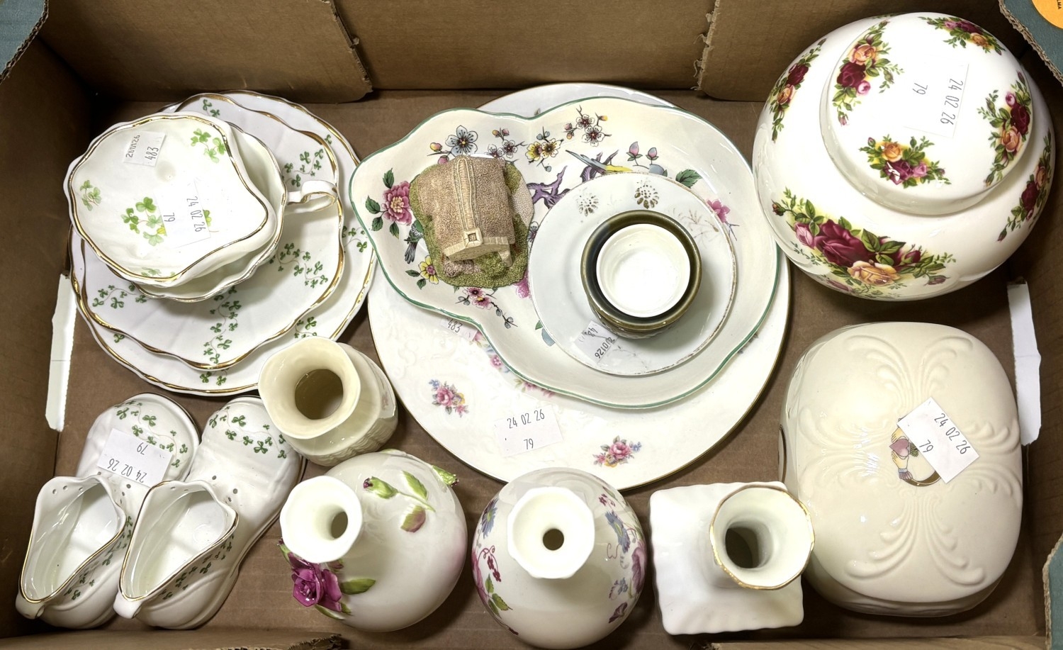 A collection of Trish Donegal china trinketware; Royal Albert lidded vase, breakfast sets etc.