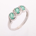 A 9ct white gold emerald and diamond half hoop ring, set with oval mixed-cut emeralds and single-cut diamonds, setting height 6.3mm, size N, 2.3g