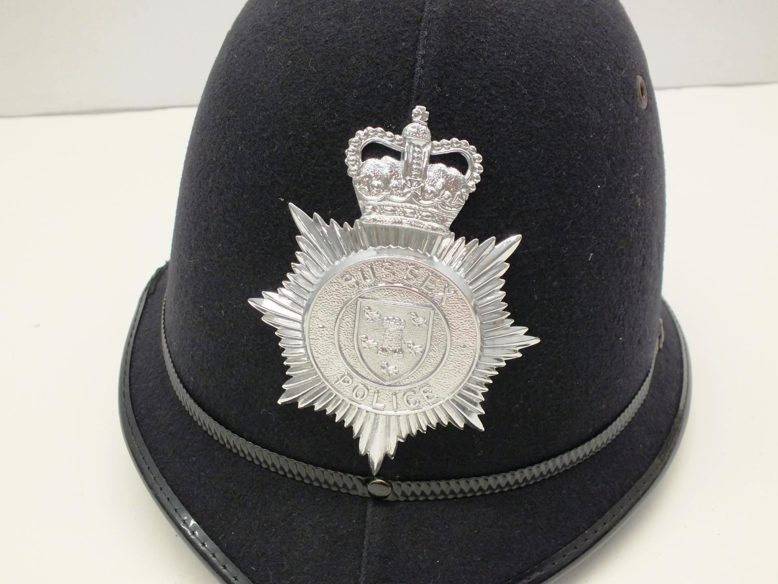 VINTAGE SUSSEX POLICE BOBBYS HELMET WITH BADGE
