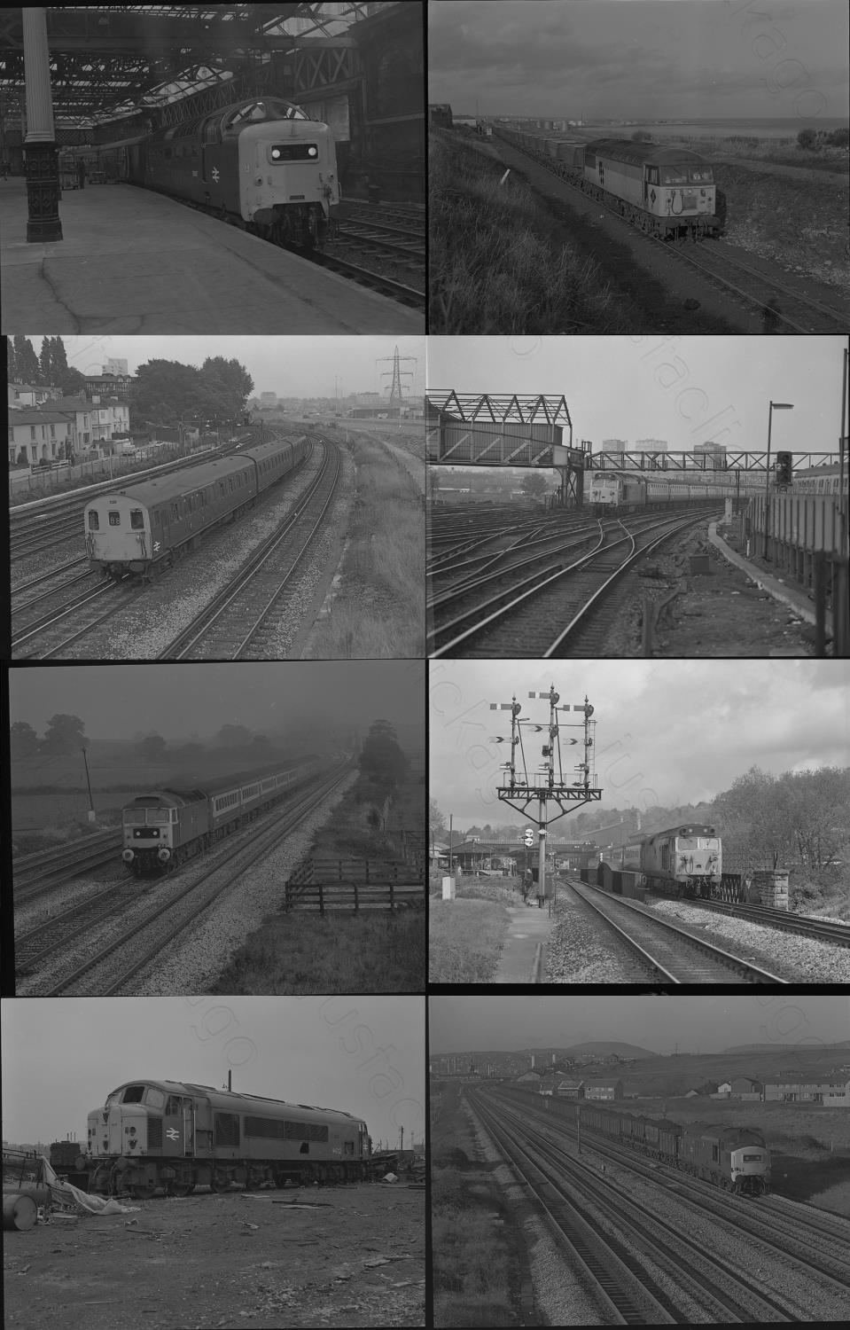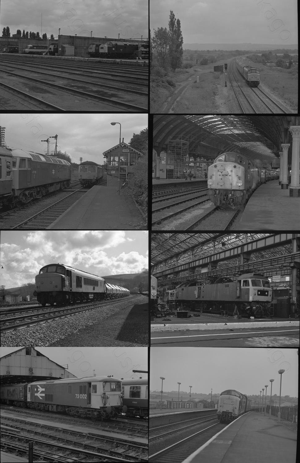 Approx. 100. Rare opportunity to acquire these iconic photographs by the esteemed photographer John Vaughan, taken at many of his favourite locations from 1979-81. Traction noted: Class 37, 40, 44, 45, 46, 47, 50, 55, 56 and 73. Locations include: Moreton, Tondu, Westbury, Foxhall Junction, Clapham Junction, Doncaster, Chilworth, Salisbury, West Drayton, Lostwithiel, Liskeard, Truro, Mexborough, Frome, Didcot, Teignmouth, Chester, Crewe, Llanwern and others. Sold with copyright, all captioned, sample illustrated.