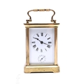 A 20th Century brass carriage clock by R & Co, white enamel dial incorporating subsidiary dial, bracket plinth with bell attachment, height 11.5cm.