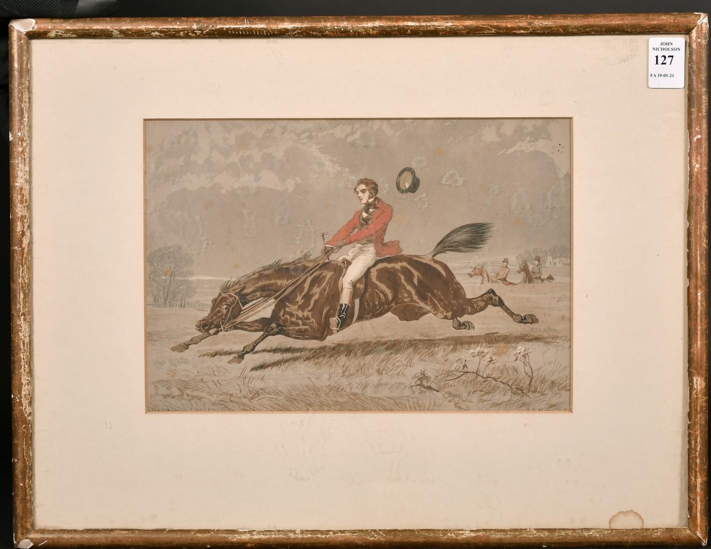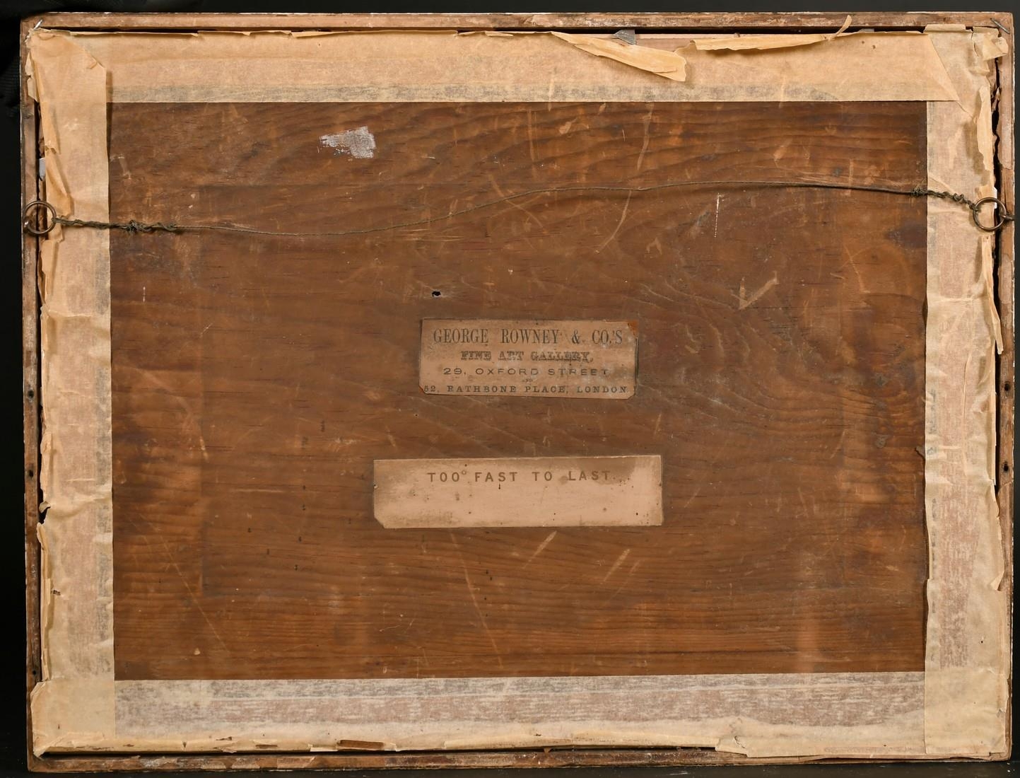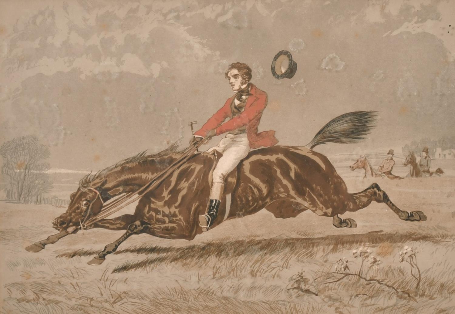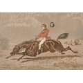 'Too Fast To Last' A print of a horse riding scene, chromolithograph, signed and inscribed l.l., l.r. and on label verso, 7.25" x 10.25".