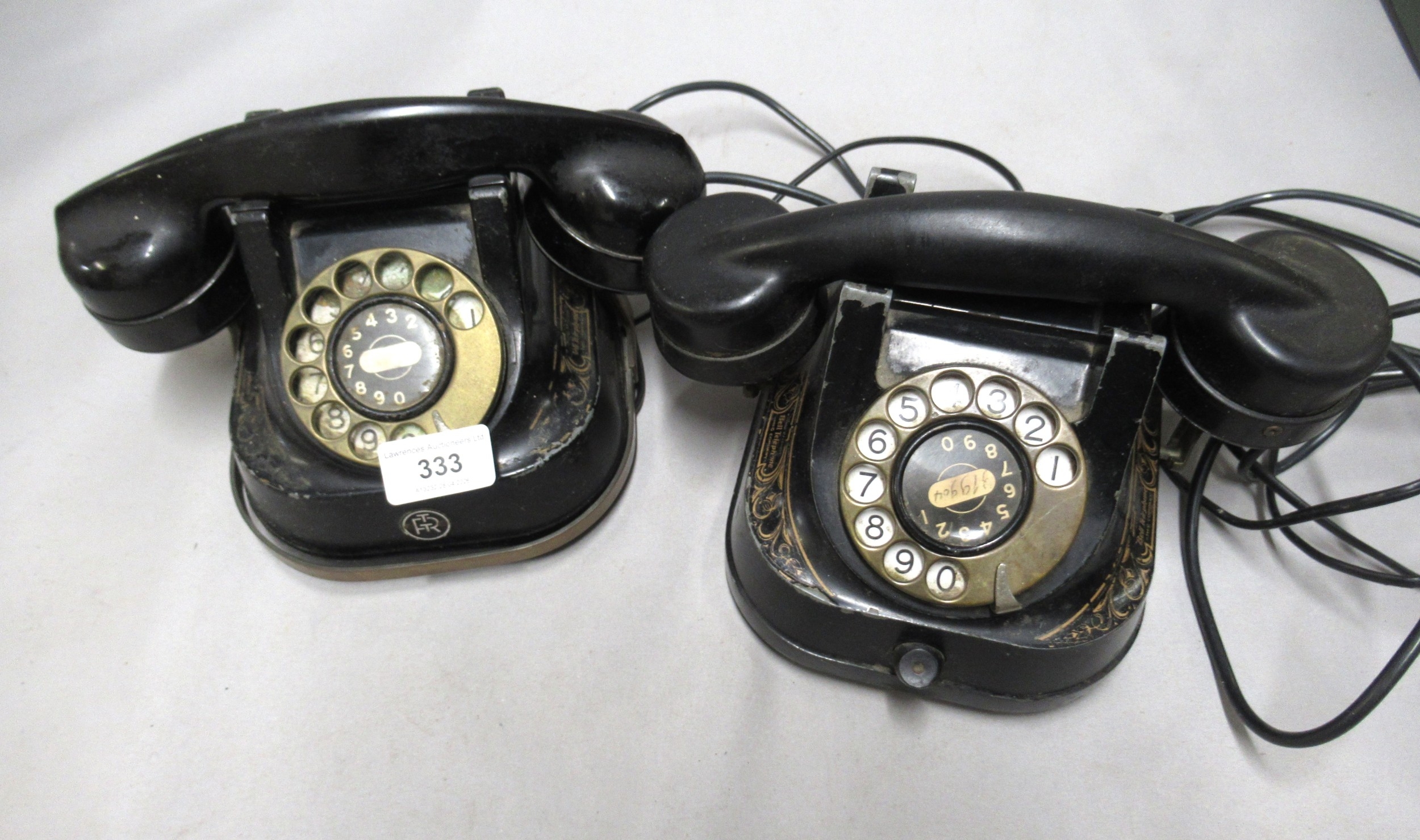 Two Continental black metal telephones by Bell Telephone Company and FTR Company