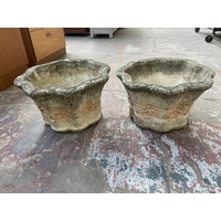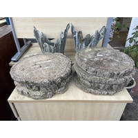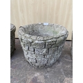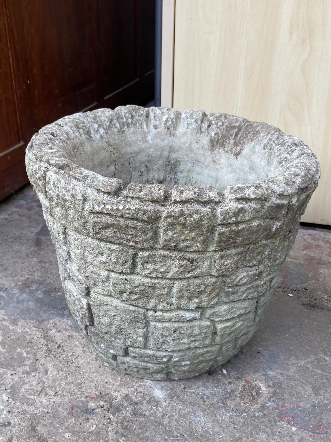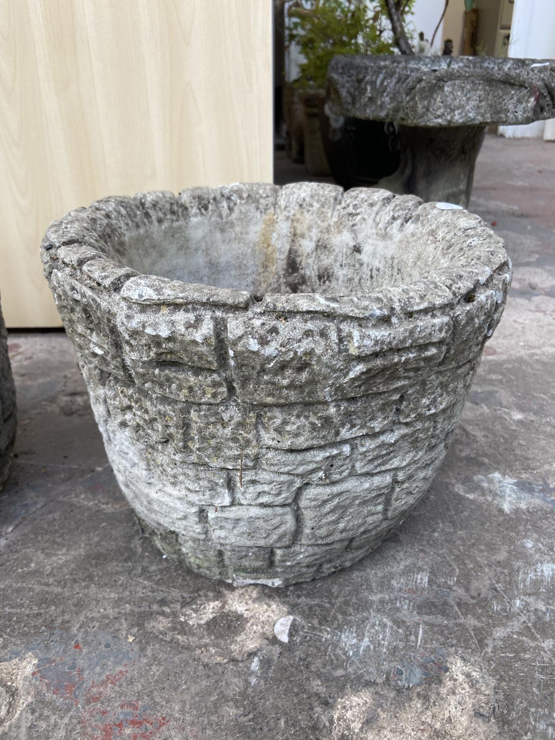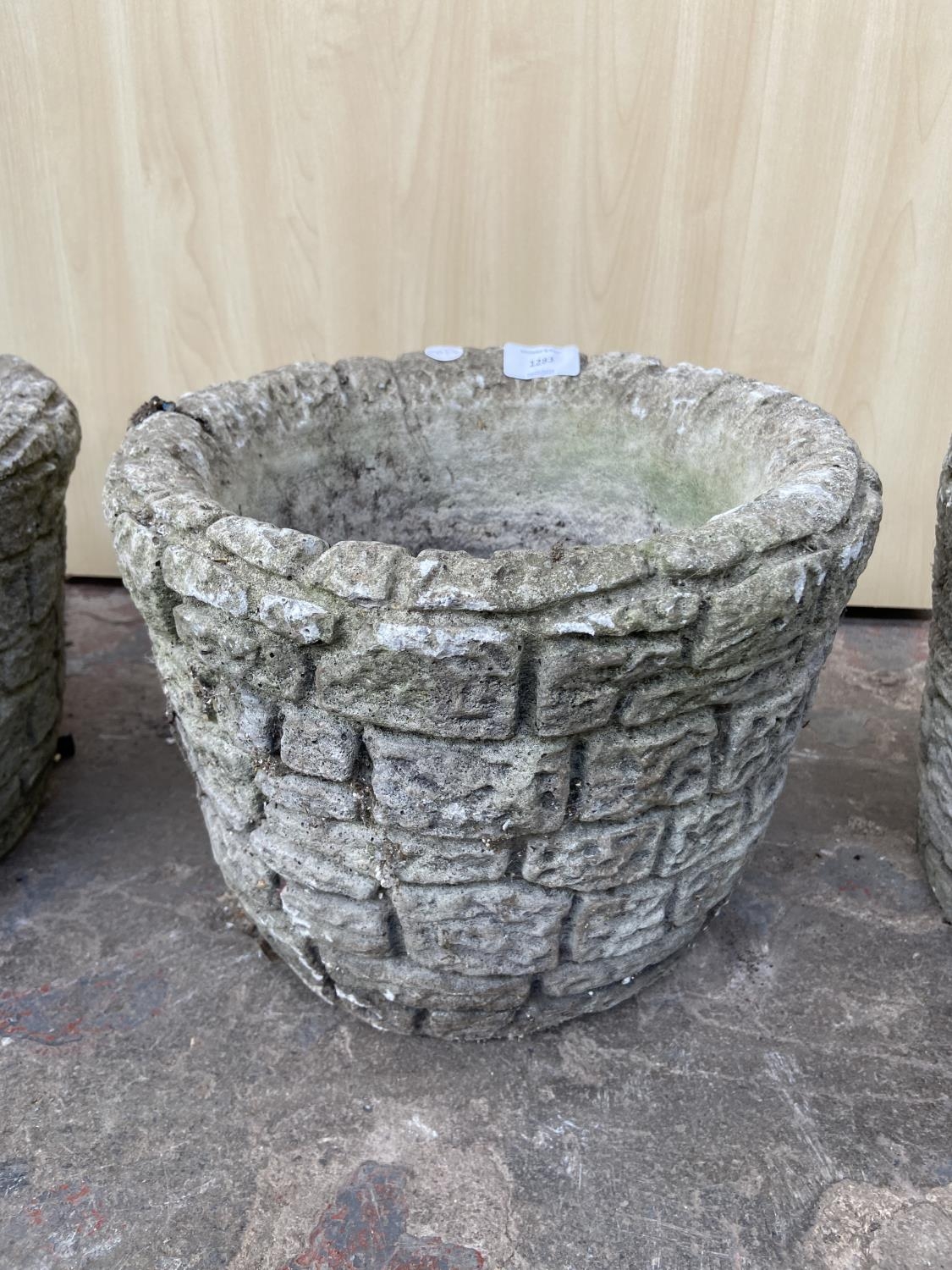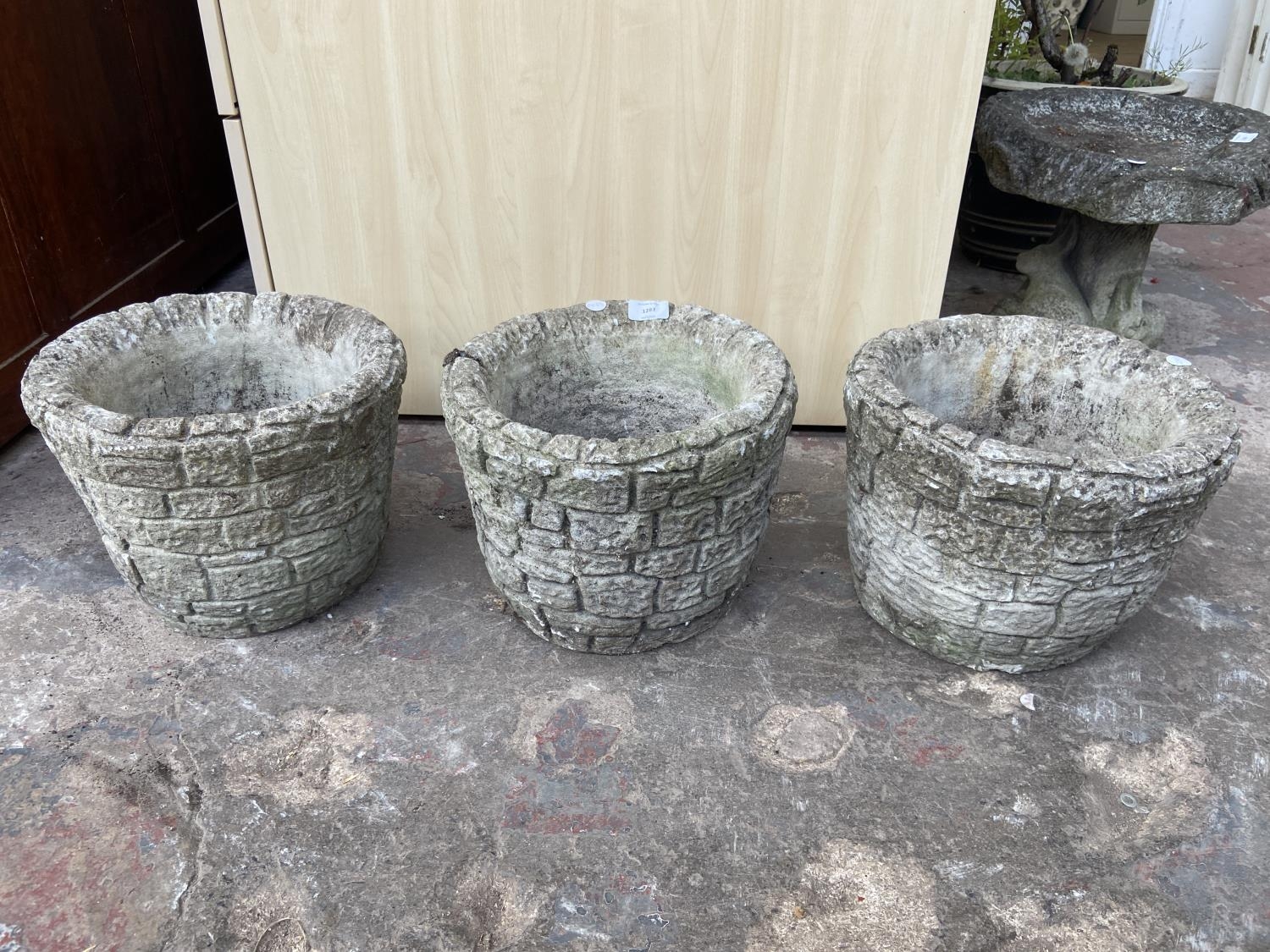 Three cast stone brick wall garden planters - approx. 24cm high x 30cm diameter