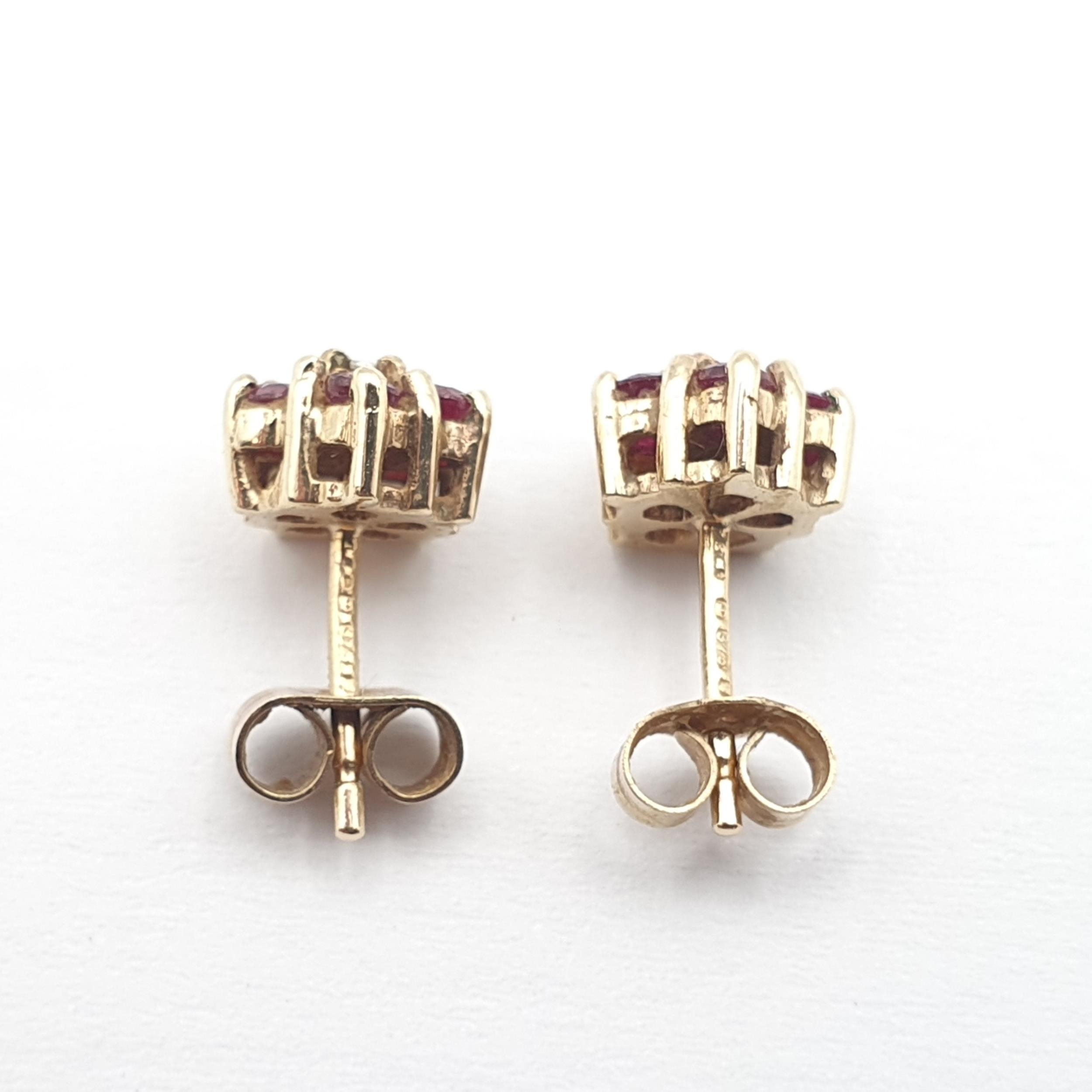A pair of Ruby and Diamond Cluster Earrings in 9ct gold, approx 1.8gms