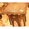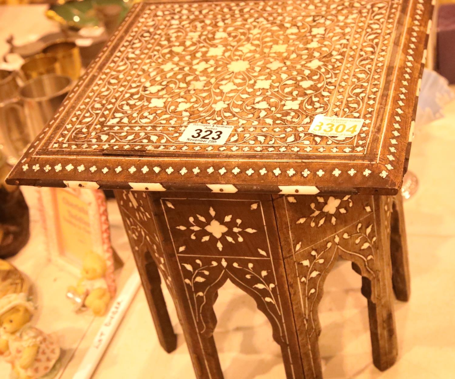 Small Indian square table with bone inlay on eight feet. Not available for in-house P&P