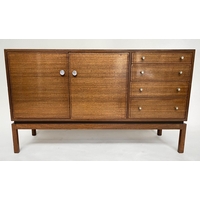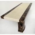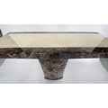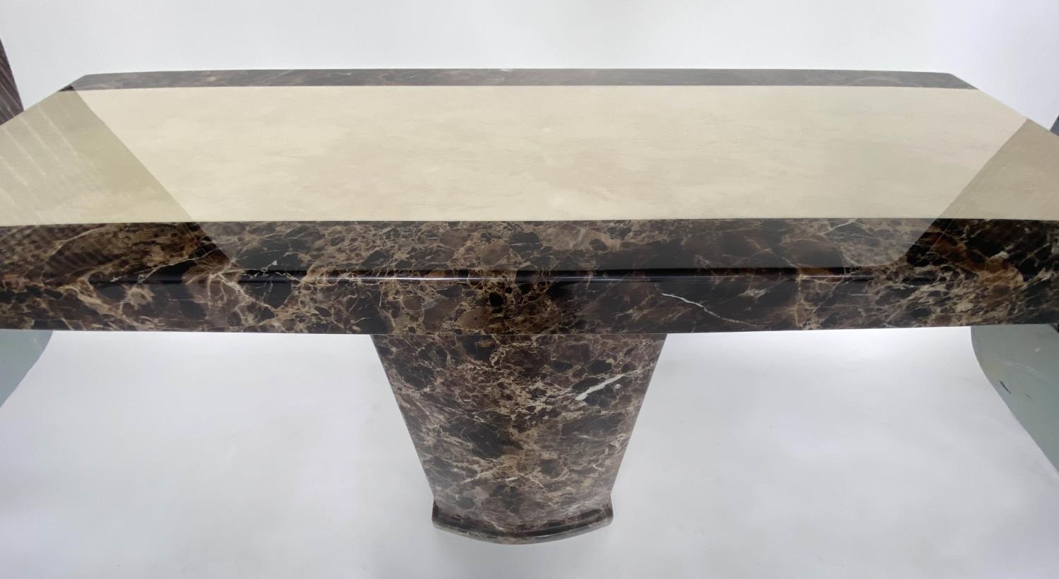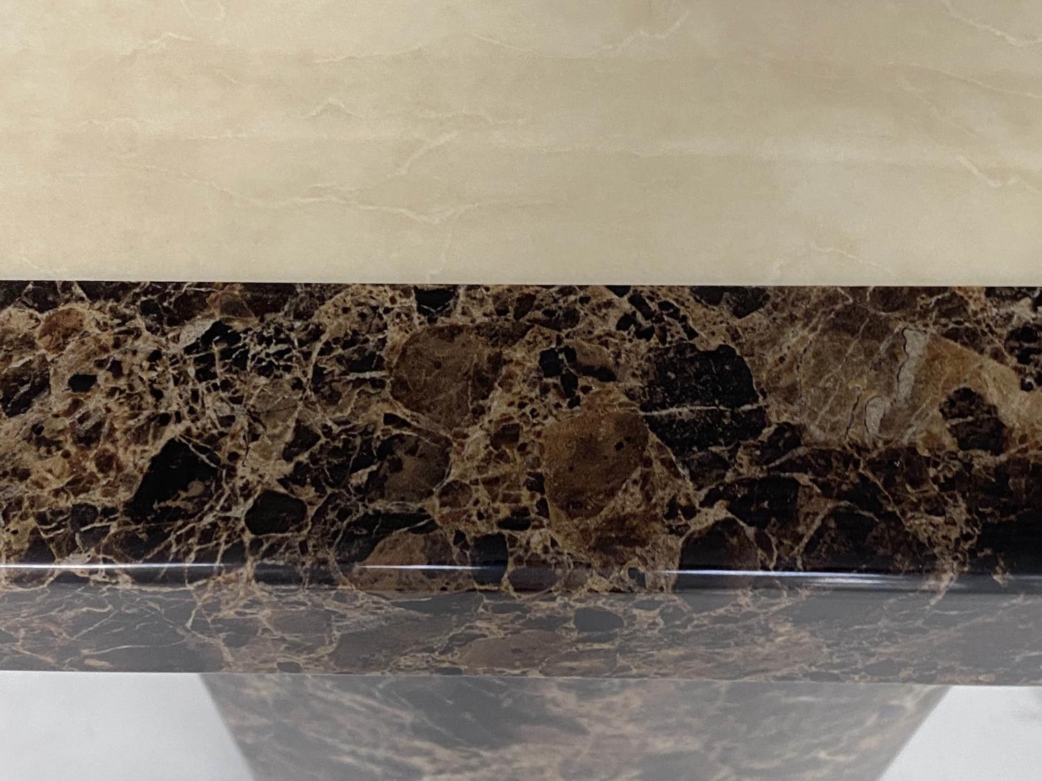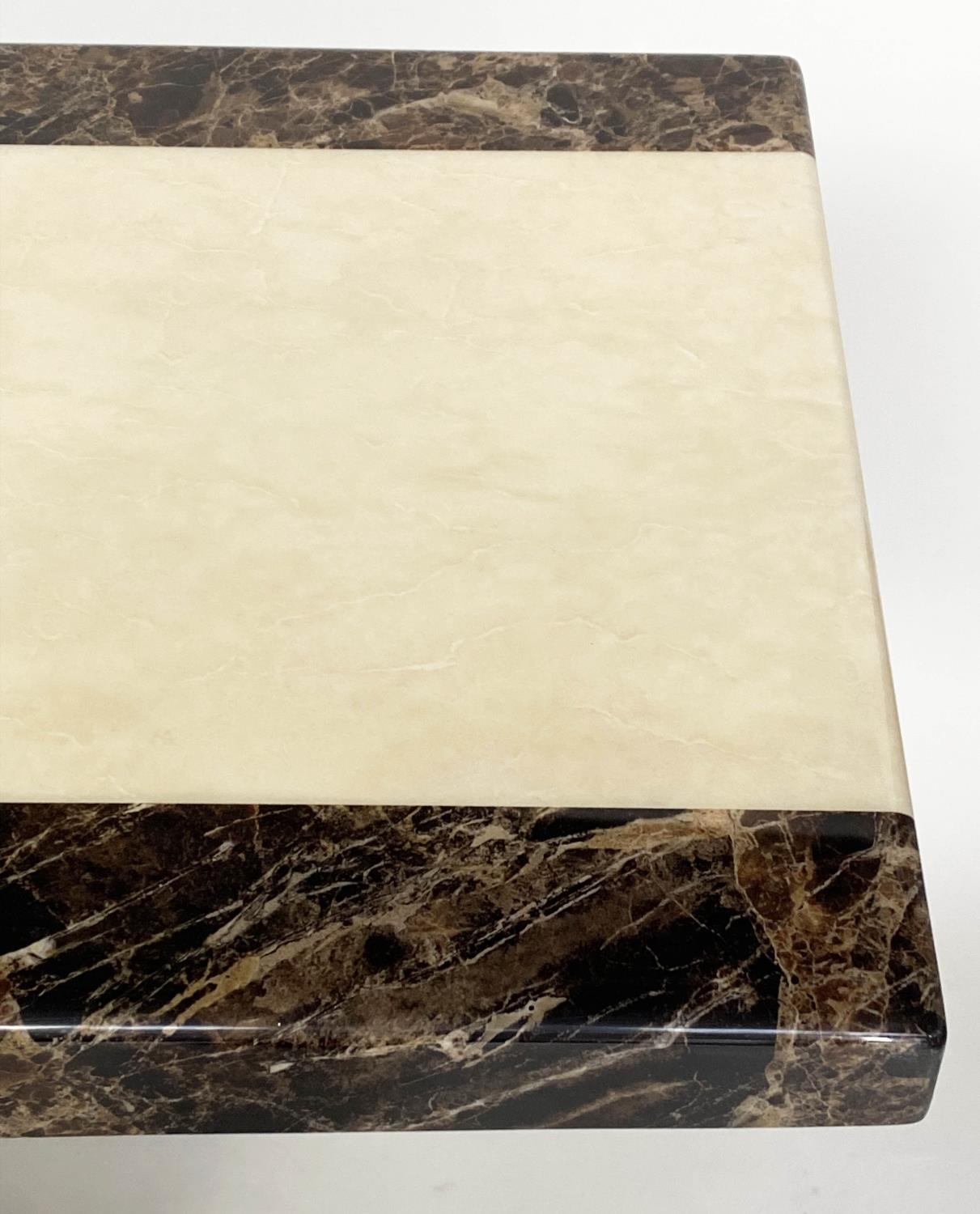 CONSOLE TABLE, 1970s, two tone marble, cream and variegated brown, on plinth support, 110cm x 40cm x 80cm H.